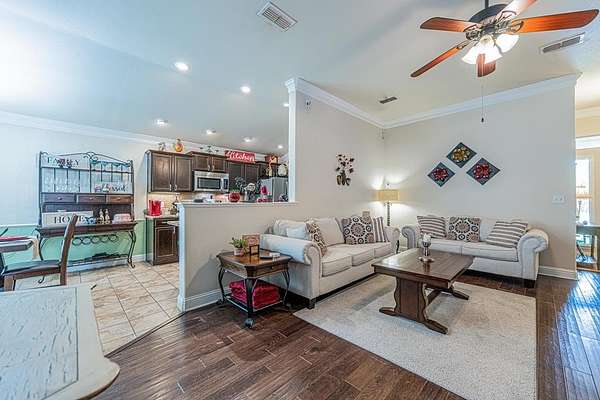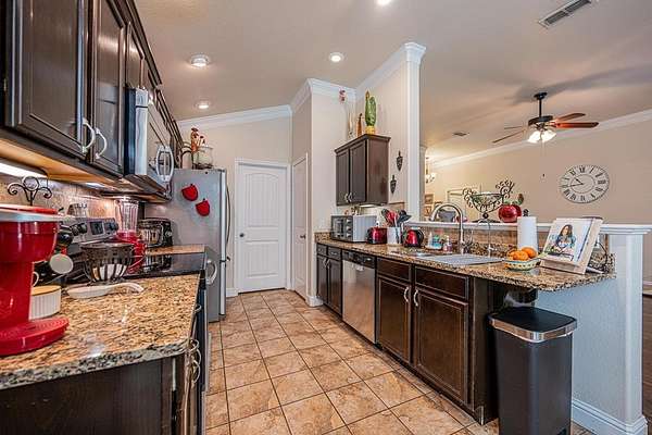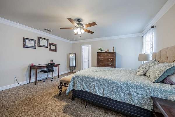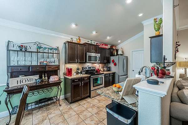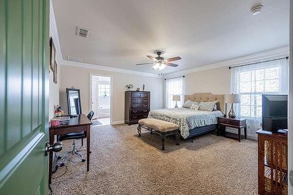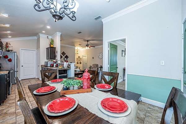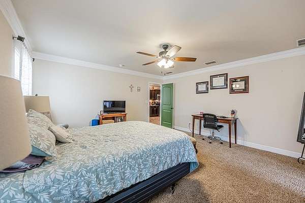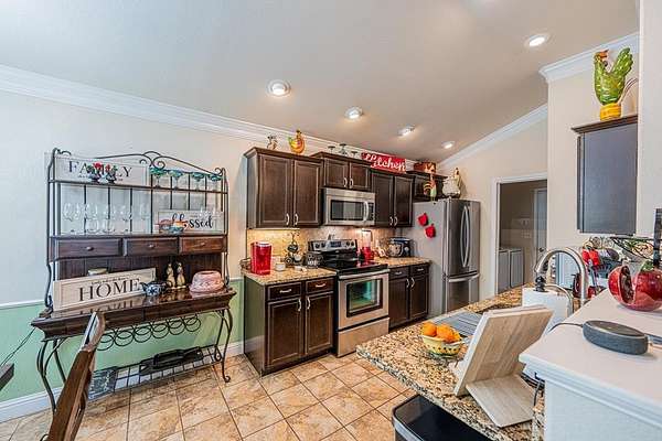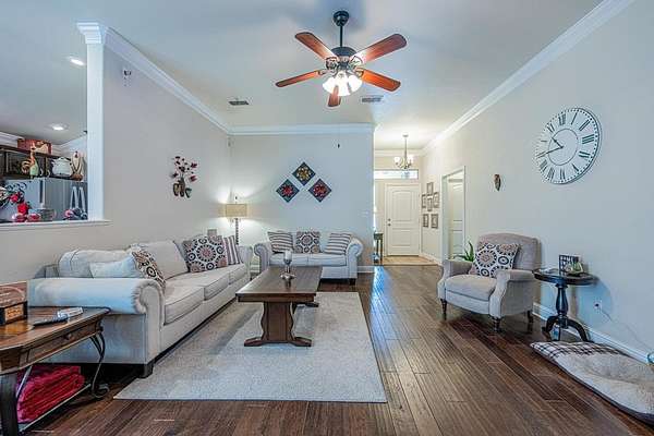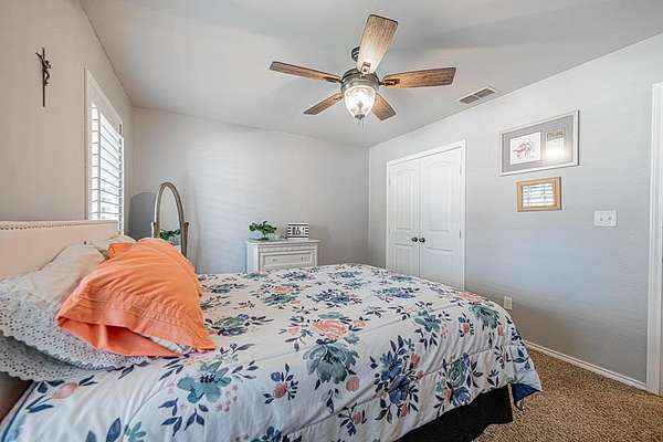 - Auto Garage Opener, Carpeting, Ceiling Fan(s), High Ceilings, Pantry, Reverse Osmosis-Owned, Security System-Owned, Shades/Blinds, Tile Flooring