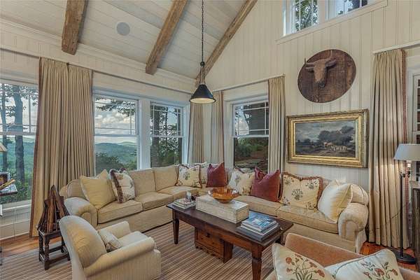 Welcome to Ravenel Ridge - the only gated community in coveted downtown Highlands. And welcome to 812 Ravenel Ridge Road. There are only a few homes currently available for sale within this exclusive enclave. From the moment you step inside, you'll be captivated by the exceptional quality - from the craftsmanship and materials to the refined and the breathtaking view of long-range mountains and charming downtown Highlands. The elegant living room provides the perfect setting for more formal gatherings, while the inviting family room offers a relaxed space just beyond the gourmet kitchen and stylish dining area. A private office is conveniently located on this level. In the opposite wing, the primary suite features a serene sitting area ideal for quiet conversation, along with two newly remodeled primary baths and separate closets. A beautifully appointed guest suite is also located on the main level, with two additional spacious guest suites upstairs. The guest house, connected by a covered walkway, includes a second private office, a well-equipped fitness room, and a full apartment with a kitchen and guest suite - ideal for extended family or guests seeking privacy. Offered mostly furnished, this is a true turn-key opportunity to begin enjoying the exceptional mountain lifestyle of Travel + Leisure's Favorite Small Mountain Town. Experience Highlands' five-star dining, boutique shopping, art galleries, cultural events, and endless outdoor activities - from hiking and boating to golfing, tennis, and fly fishing. Building in the mountains can be challenging - why wait, when you can step into a beautifully furnished home designed for immediate enjoyment?