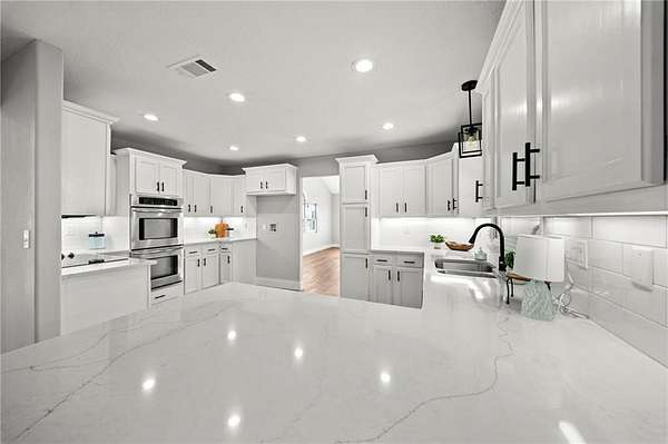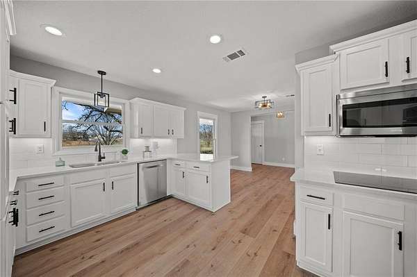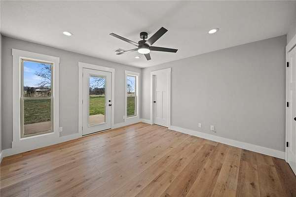 Welcome to your private slice of NWA living in Bentonville! Situated on 2.4 wide-open acres—with additional acreage available—this beautifully updated home offers space, freedom, and versatility. The cleared pasture land creates an expansive setting with long sightlines and endless possibilities, whether for a hobby farm, horses, gardening, or simply enjoying privacy and open space, with plenty of usable land to make it your own. Inside, a light-filled layout features modern finishes throughout. The kitchen shines with quartz countertops, an electric cooktop, and double oven—perfect for everyday living or entertaining. The main level offers luxury vinyl plank flooring with tile in the bathrooms, while upstairs features hardwood floors and a unique loft with its own bathroom. Recent updates include a new roof (07/2025) and HVAC (03/2026). Outside, a 34x32 metal shop adds space for storage, hobbies, or workspace. Enjoy country-style freedom just minutes from Bentonville amenities.