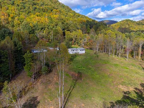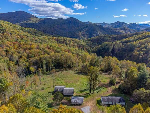 Privately situated off a state-maintained road lies this expansive UNRESTRICTED, property that spans a little under 14 acres at 3000' elevation in the community of Ellijay in Franklin. The possibilities are endless for having your family compound or create a tiny little village of homes. Water, septic and power already in place. Icing on the cake - picturesque mountain views. Most land is usable with plenty of room for gardening or perfect for farm animals with a stream on property. Ideal for homesteaders, nature enthusiasts, and those seeking tranquility, this land promises a secluded haven in the heart of the Smoky Mountains. Start with a blank canvas or add a renovator's touch, the property currently houses a 3bed/2bath home with unfinished basement & detached garage in addition to a 3 bed/2bath doublewide. All structures sold as is. Less than 20 minutes to Western Carolina University and Cullowhee or 30 minutes to downtown Franklin or Sylva - let privacy takeover. Cash only.