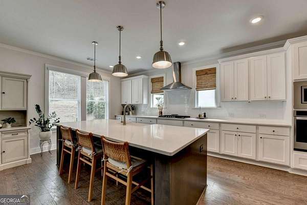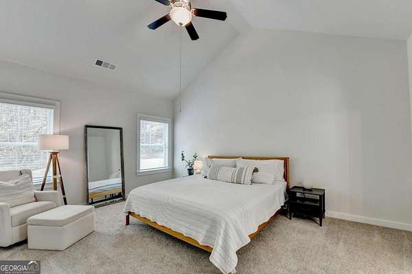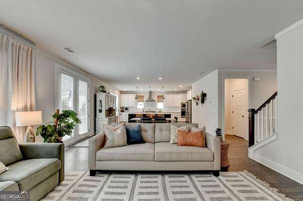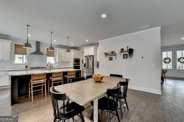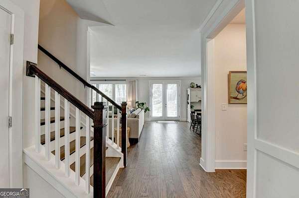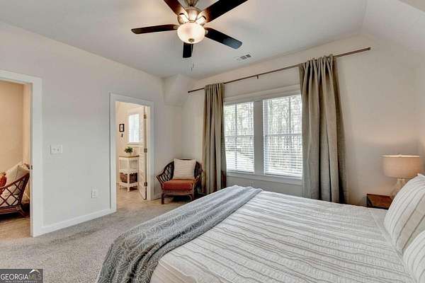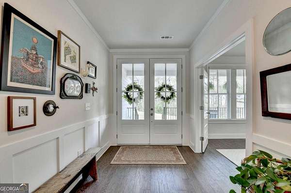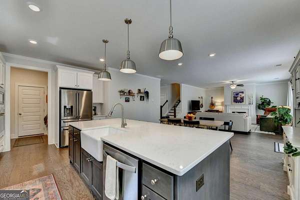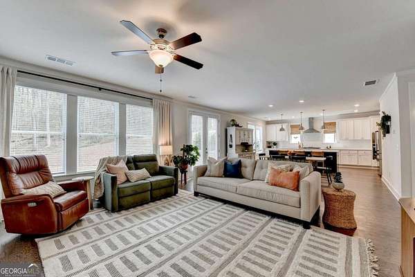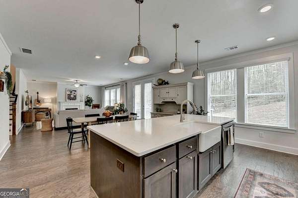 Welcome to Long Hollow Landing at Lake Lanier! Beautiful 2 1/2 year old farmhouse style home built by David Patterson Homes is situated on a 2+ acre cul-de-sac lot; Relax on the covered front porch overlooking a wooded area; A light filled foyer leads you into this open-concept home with a private home office at the front of the house; The large great room with gas fireplace & wall of windows flows into the eating area and also into a gorgeous chef's kitchen with a huge quartz island/farm sink, stainless appliances including a gas stove top, built-in oven & microwave plus tons of white cabinets; A mudroom with built-in bench is located next to the kitchen & across from a large walk-in pantry; Powder room is private, located off foyer; There is 5-inch plank wood flooring on main floor & wood treads on stairs leading to the upstairs; Enter the 2nd floor to a loft; Owner's suite features a vaullted ceiling, large bathroom with frameless shower, garden tub, double sink vanity and a spacious walk-in closet that offers convenient access to the laundry room; Three additional upstairs bedrooms include one with an ensuite bath while the other two share a Jack & Jill bath, all baths have stone countertops; An unfinished side daylight basement has 10' ceilings & is ready for you to customize to suit your needs/stubbed for a bath; Private backyard has a level area with deck; Bonus of a wooded area to left of home includes a quarter mile of well-maintained trails - perfect for exploring the property, exercising and enjoying nature; Community amenities offer a gathering area with pavillion/gazebo, access to Lake Lanier, and day use of community swim/sun/fishing platform on each of the two docks; Located in sought after East Forsyth HS district, close to marinas, restaurants, shopping including the North GA Premium Outlet. Seller is relocating due to a new job.