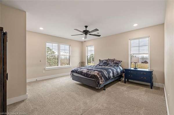 I-49 to the Rudy Exit North of Alma. East on Hwy 282, North on Hwy 71, East on Dow Jones, Right on Belmont. Home on Left.