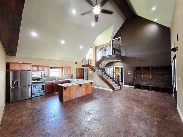 Experience the perfect blend of space, privacy, and comfort on this stunning 5 acre estate in Royse City. With 5767 sq ft, 5 bedrooms, 4 full baths, and 1 half bath, this thoughtfully designed home offers plenty of room for everyday living and entertaining. The open concept kitchen features high end appliances, custom cabinetry, and waterfall countertops that flow seamlessly into a bright and inviting living area with views of the resort style pool and peaceful pond. Large windows throughout the home provide natural light and showcase the beauty of the surrounding acreage.