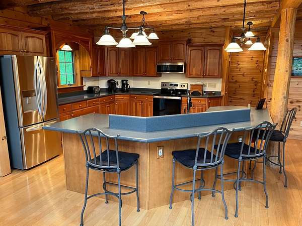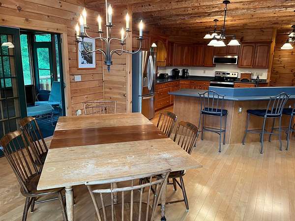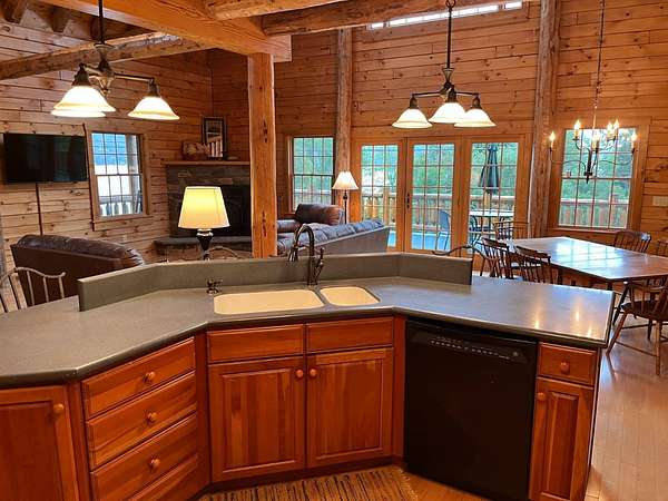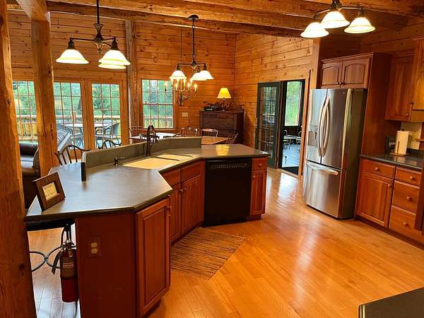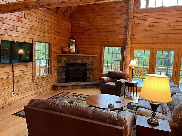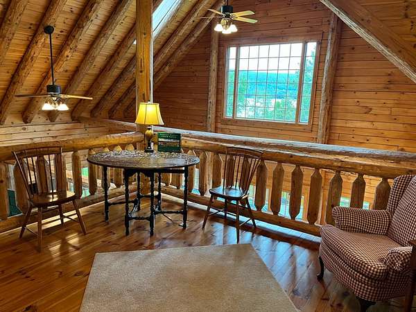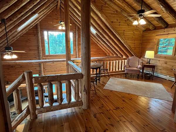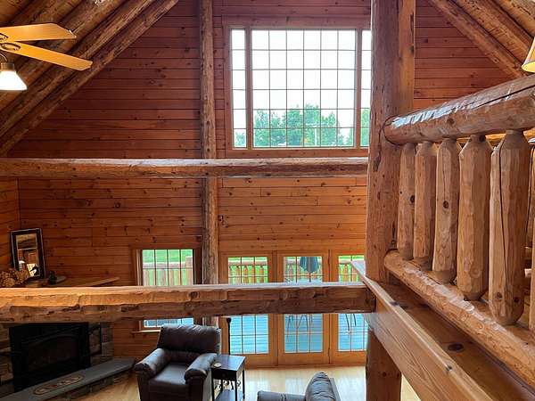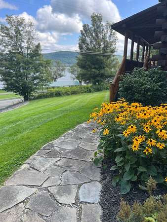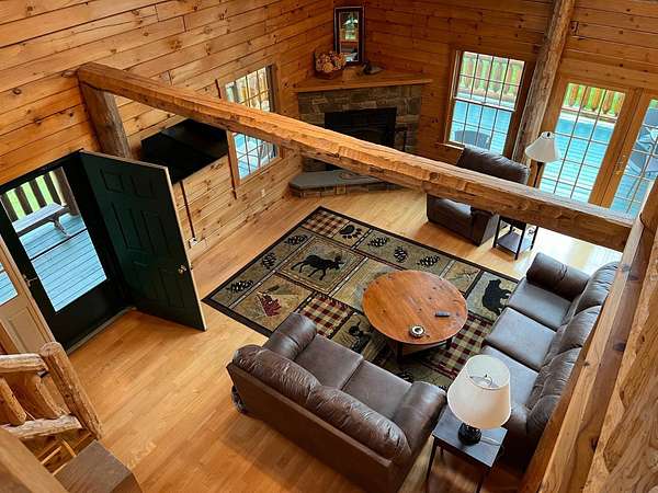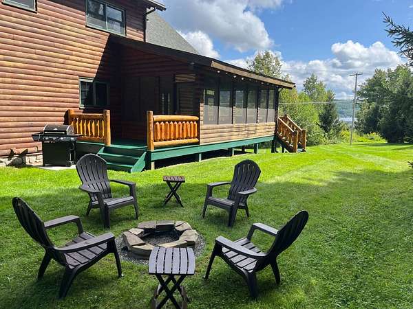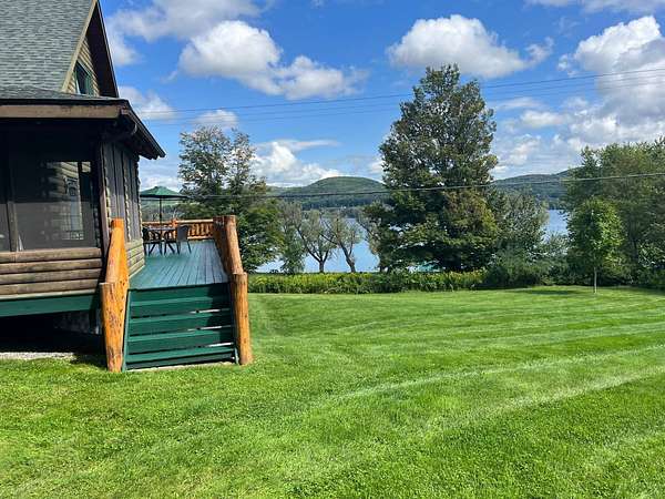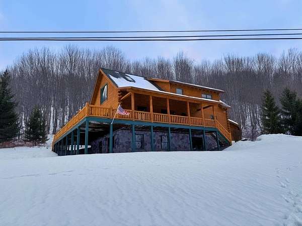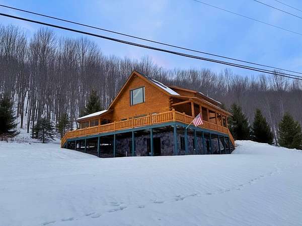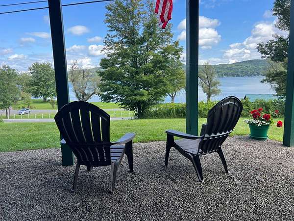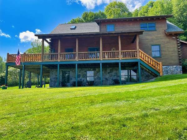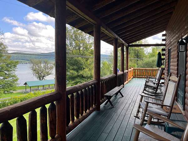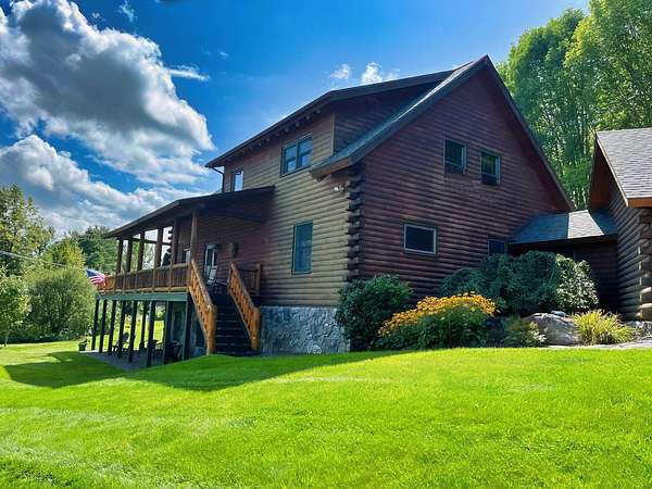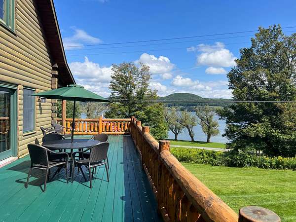 Stunning Views of Canadarago Lake welcome you to this beautiful log home, ideally located in Richfield Springs, NY. Just across the road, Baker's Beach offers direct access to the lake for swimming, boating, fishing, and endless recreation. This property has deeded lake rights just up the road with a dock and boat slips available. Built in 2004 and meticulously maintained, this home is designed to maximize its breathtaking lake views, which are visible from most interior spaces. The main level features a bright, open-concept layout where the living room, dining area, and kitchen flow seamlessly together, all framed by abundant natural light and picturesque lake vistas. From both the living and dining rooms, step out onto the expansive wraparound porch-perfect for relaxing or entertaining. Off the dining room, a screened-in three-season porch provides an ideal space to enjoy the outdoors without the bother of insects.The kitchen leads directly to the laundry room and provides access to the attached two-car garage. The first-floor primary suite offers convenience and comfort, complete with a spacious walk-in closet and a private ensuite bathroom. Upstairs, you'll find two additional bedrooms, a full bathroom, and a loft that overlooks the open main level while also capturing beautiful views of the lake. Hardwood floors run throughout the home, adding warmth and timeless appeal. The finished lower level is perfect for gatherings, featuring a large game room and TV area. A fourth bedroom and full bathroom make this level ideal for hosting guests. Walk-out access leads to the side yard and a patio tucked beneath the porch, offering even more outdoor living space. The property served as a primary residence from 2004 through 2023. In 2024 and 2025, it was successfully offered as a short-term baseball rental, booking 11 weeks in 2024 and 12 weeks in 2025, generating over $60,000 in seasonal rental income. The property is an excellent opportunity for both personal enjoyment and/or investment potential.