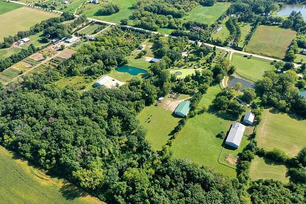 Escape the hustle and bustle of city life with this rare 10-acre residential-zoned oasis just one hour from downtown Chicago. Tucked away at the end of a quiet country road and backing up to native grasses, plants, and a wooded area, this private and secluded property offers endless potential to build your dream home / ranch. A tranquil stocked pond with a charming gazebo sets the tone for relaxation and recreation, making this the perfect personal getaway. The land features a newer, 6600 +/- sq ft fully finished warehouse complete with a kitchenette, bathroom, concrete epoxy floors, and drywall, with four 12 foot overhead doors - ideal for hobbyists, collectors, or business use. Utilities are already in place, including electric, gas, and a private wells. A two-car garage for your future home is already built, and the property formerly housed a single-family residence, making it primed and ready for new construction. Whether you're looking for a serene retreat or a place to create your ultimate forever home, this is a must-see opportunity. Right off of route 23 and Kishwaukee Rd.