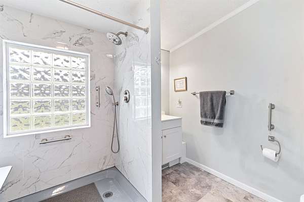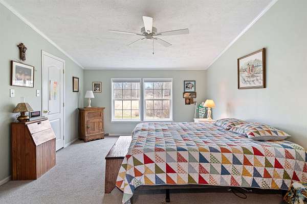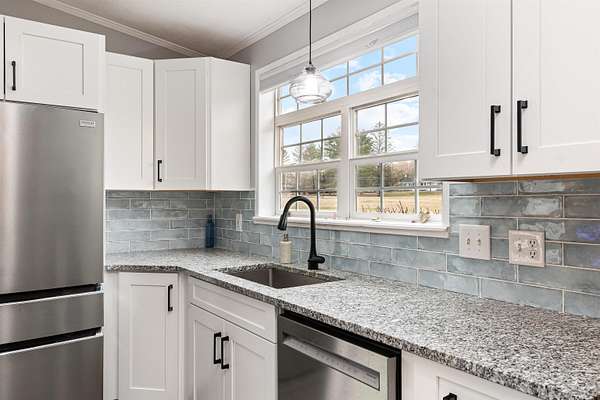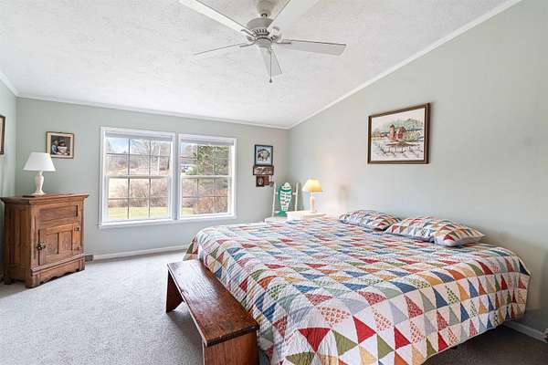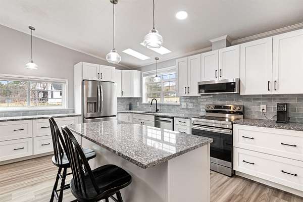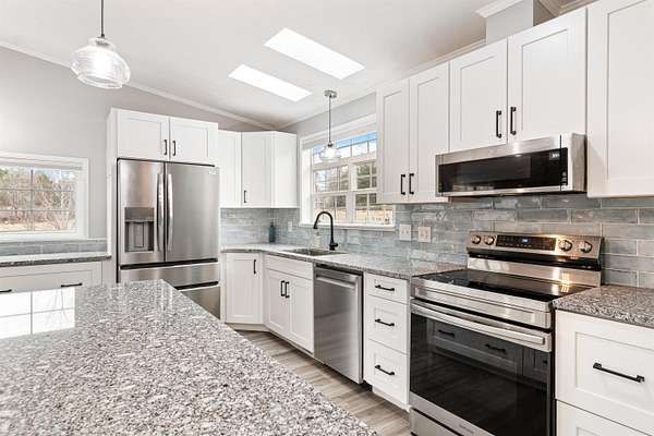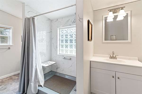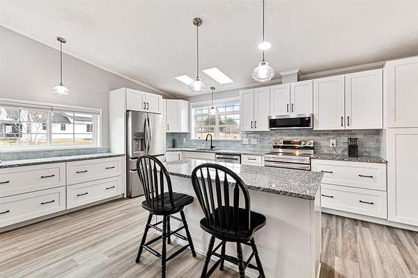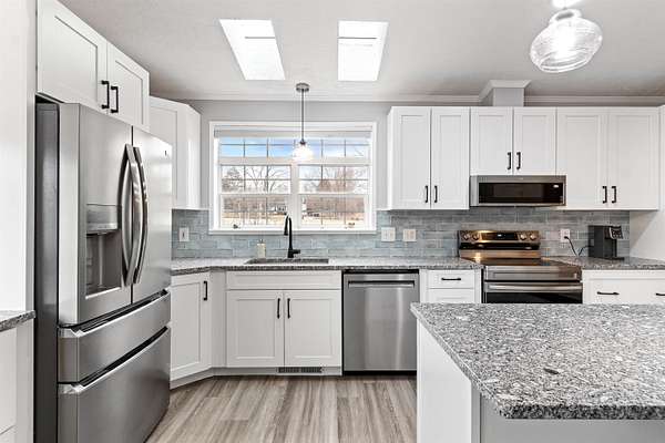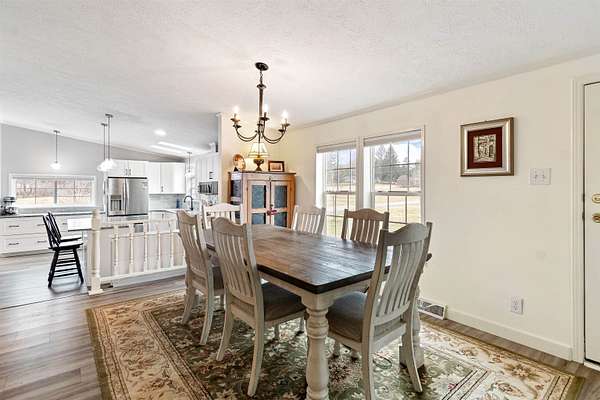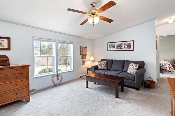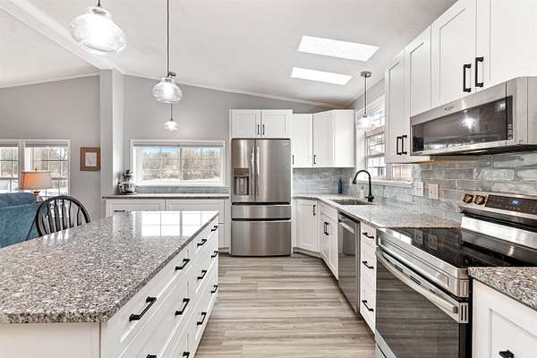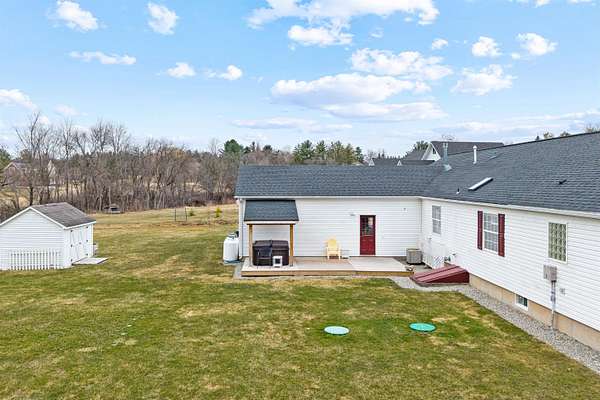 Welcome to this beautifully updated single level ranch in Shelburne, offering room to grow on 2.9 acres. This sunny 3 bedroom, 2 bath home features an open layout with new flooring throughout the kitchen, dining, & living areas. The recently renovated kitchen features new cabinets, granite countertops, kitchen island, & ample space for cooking. The dining & living rooms open to the kitchen, perfect for entertaining. The living room is highlighted by a cozy gas fireplace, creating a warm, welcoming space for relaxing. The spacious primary suite includes a newly renovated bathroom with an accessible walk in shower. Two additional bedrooms are served by a second full bath. Downstairs, the heated basement, with 8 foot ceilings spanning the home, offers incredible potential for future finishing, whether you envision additional living space, a home gym, or workshop. Step outside to the recently added deck complete with hot tub, ideal for unwinding or hosting guests. The home is set back from the road, and includes several newly planted trees, a shed, & a fire pit for cozy VT evenings. At the back of the property, trails lead to a creek that spills into the LaPlatte river. A sunroom in front provides the perfect spot to relax & the attached two car garage means no walking in the rain with groceries. Additional highlights include a newer roof & water heater, custom cellular blinds, water softener, new overhead lighting, & hardscaping, providing peace of mind for years to come. Located just minutes from shopping, Mt. Philo, & only 15 minutes to Burlington, this property combines rural tranquility with convenient access to local amenities.