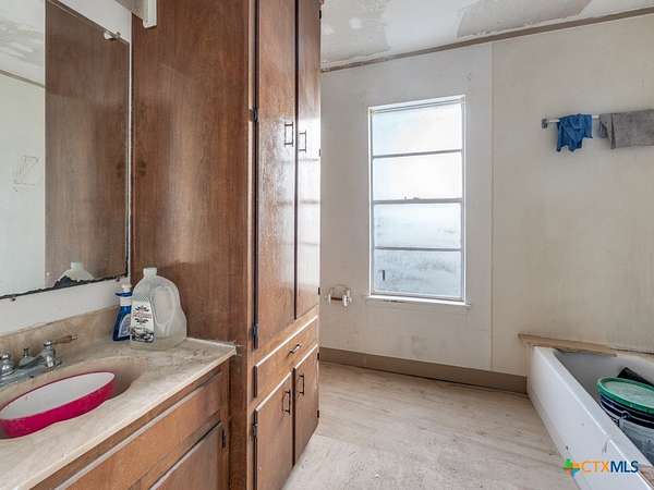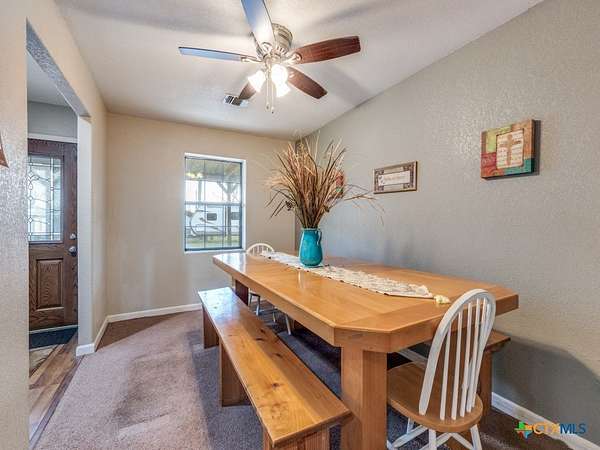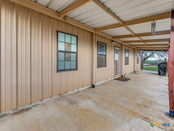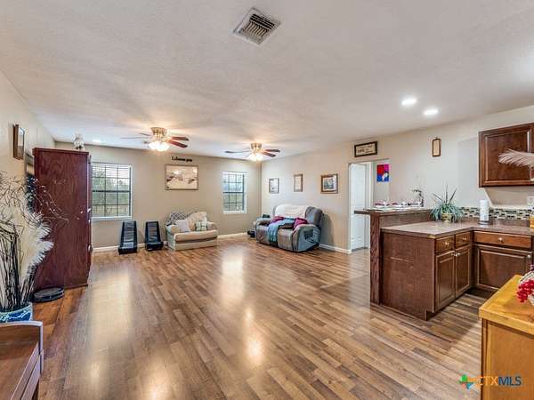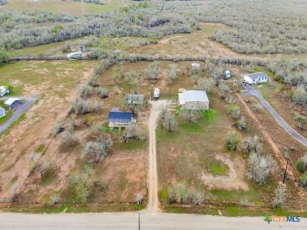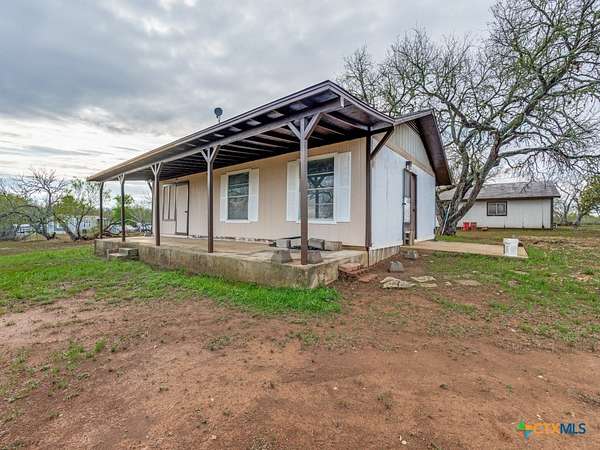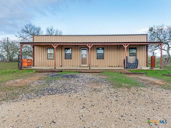 4 ACRES OF QUIET COUNTRY LIVING just 6 miles from the heart of Seguin. 4 bedroom, 2 bath updated barndominium home plus a 2 bedroom, 1 bath guest home located on a level, partially wooded lot. Main home (2500 sqft.) features open living/kitchen design with spacious kitchen. Breakfast bar, breakfast area, and separate dining room, which could serve as home office. Large master suite with his/her closets, large Jacuzzi tub, and walk-in tile shower. Detached garage featuring double doors. The 2/1 guest house is not fully finished (1232 sqft.) but has a brand new roof in 2025. The guest house features an open living/kitchen/dining layout plus additional room/office. RV hookup near main house. Come feel the country breeze and stargaze outside the city limits!