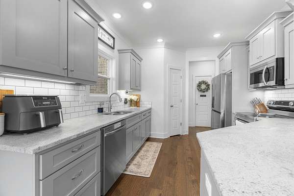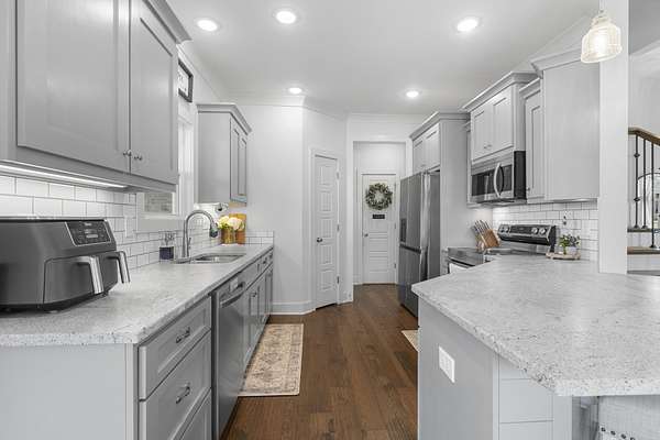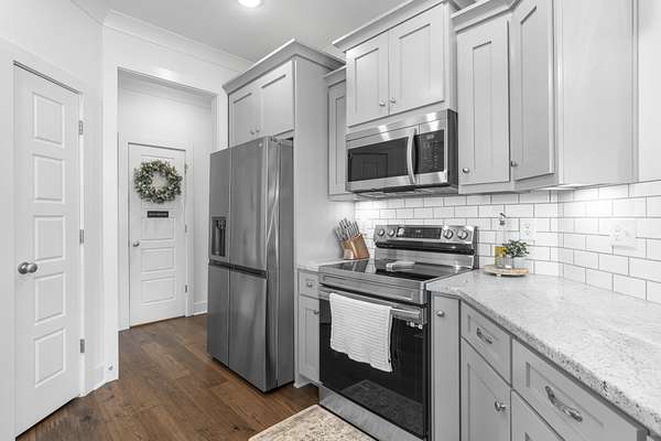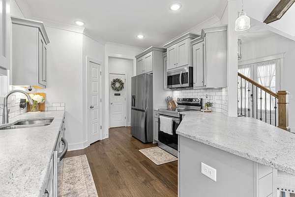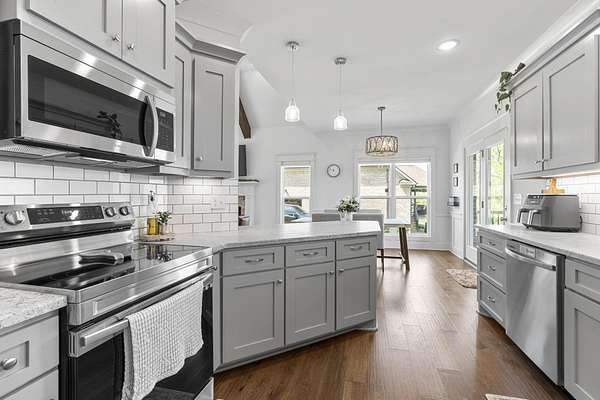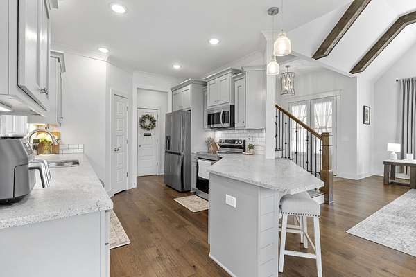 2022 Eastland Construction built Dakota floor plan on a 2 acre lot that provides Privacy in the back yard (No one can build behind you) and currently zoned for Mt. Juliet high school! Sit and relax on the back porch overlooking woods, a flowing creek, and wildlife galore! This home has an expanded 2 car garage (29 ft. wide) providing the ability to park inside and still have room for tools, mowers, or bikes etc. Primary BR is on the main level with huge walk-in closet and has a sep walk-in tile shower/soaking tub! 2 more Br's upstairs with a huge bonus room over the garage. Spray foam encapsulated crawl space! Check out the video attached below.