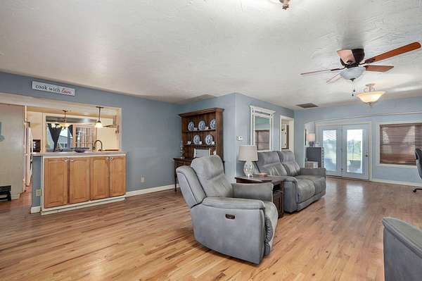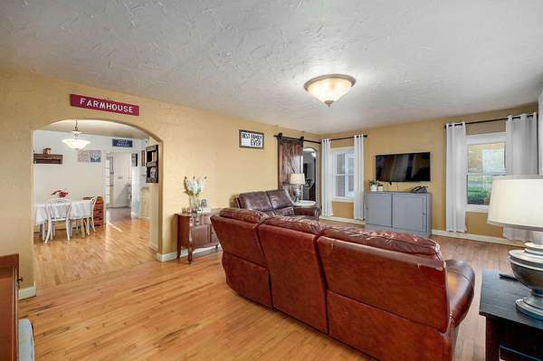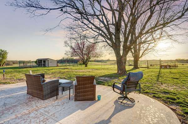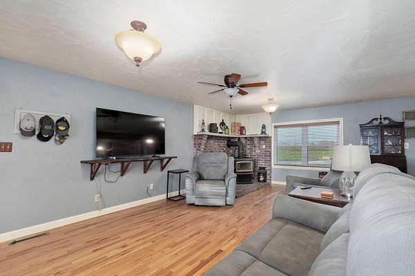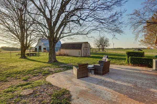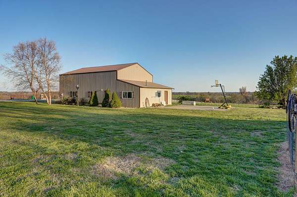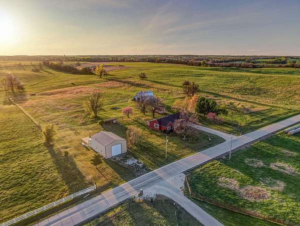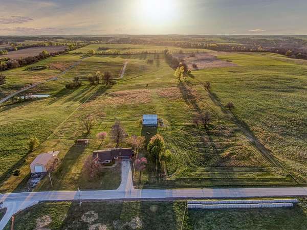 Take a look at this charmer! 10 ACRES | 2192 SQ FT of single-level living | 3 Bed - 2 Bath | MASSIVE SHOP 30x52 | Barn + Outbuildings. On 10 open, fenced acres of pastureland, the property delivers stunning panoramic views and unforgettable sunsets! Modern updates include new roof, windows and (1) HVAC in 2023. The home features dual climate control with two systems ensuring year-round comfort. Equipped with a wood burning stove for cozy comfort in cooler weather. The home is welcoming with the kitchen centrally located. Floor plan accommodates easy flow into the 2 living areas and open sightlines. Sunroom/mudroom is ideal for coming in from enjoying your property. The windows allow natural light to pour in and frame the stunning view. Spacious layout offers plenty of room for a home office or flex space. Oversized two-car garage offers deep bays. You'll find a massive insulated shop on its own meter, with concrete flooring, 220 electric and already plumbed. Location offers a perfect balance of privacy and accessibility to Ash Grove, Springfield and surrounding communities. Located in Dade County right on the Dade/Greene county line offering less expensive taxes. Whether you are looking for a hobby farm, shop or simply place to breathe this property delivers!