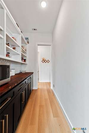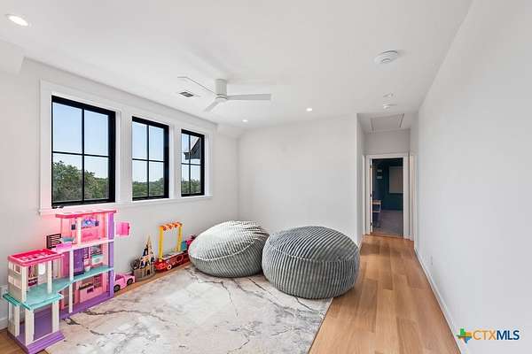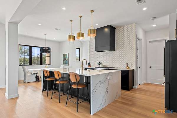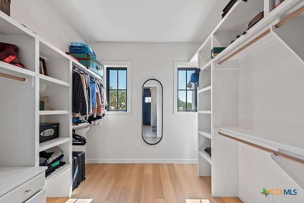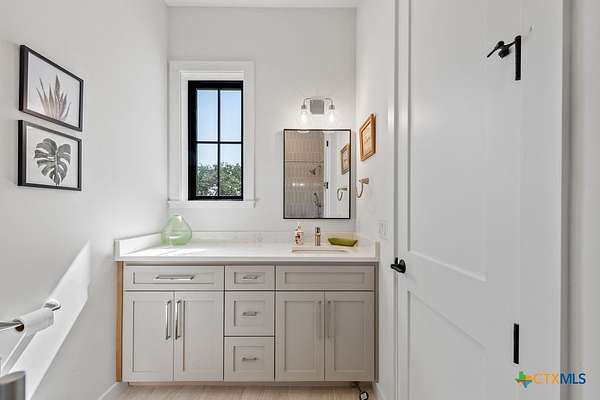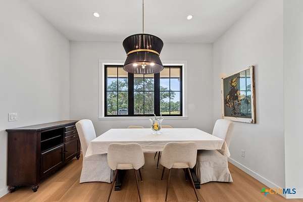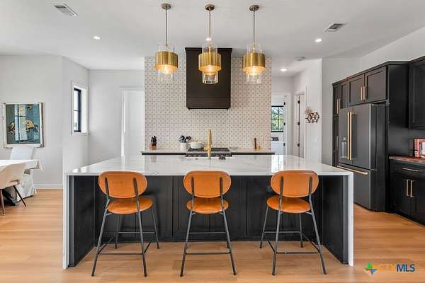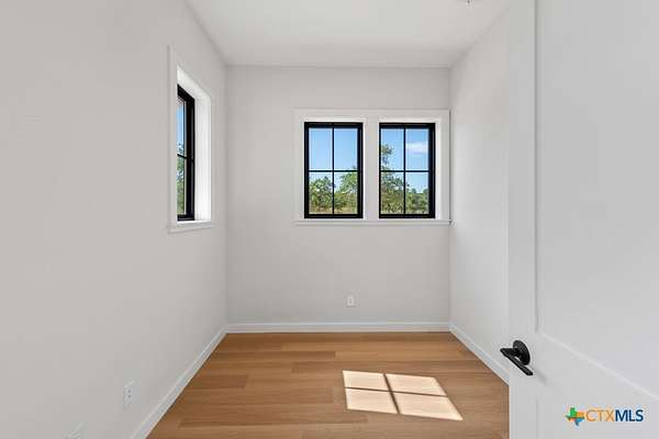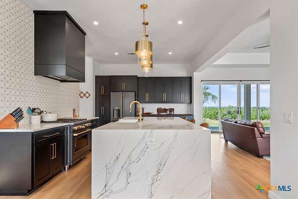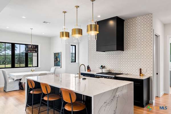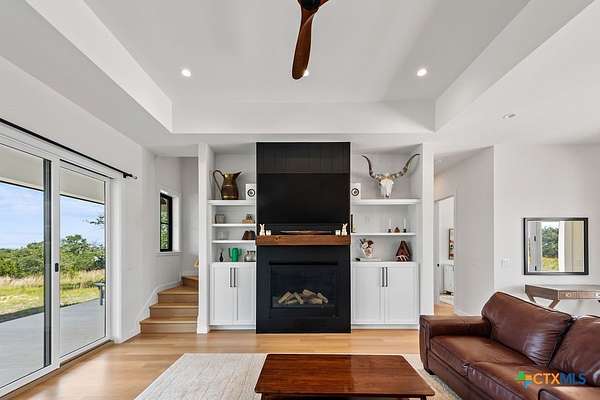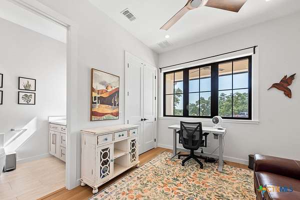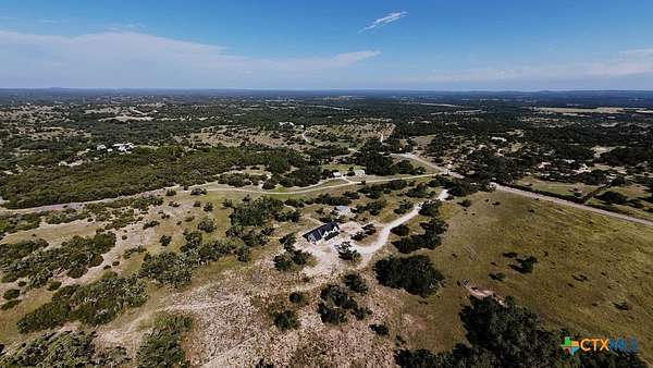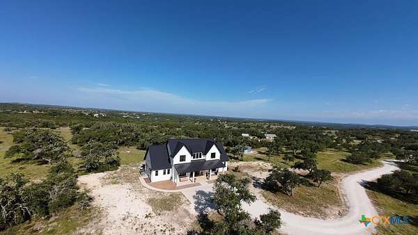 Masterful design and modern luxury are uniquely embodied in this Modern Farmhouse home located in High Ridge Ranch and nestled on an 8.51-acre lot where Hill Country sunsets span for miles. There are lush green panoramic views all around. Many trees offer shade during Texas summers. Minimal Cedar Trees can provide relief for your allergies. Wildflowers not only provide beauty but also help with the conservation of butterflies and bumblebees. Your living room is bright and airy, featuring a tray ceiling, Luxury Vinyl Plank floors, and many windows that allow natural light to flow throughout the house. Expansive glass doors provide an uninterrupted view of the landscape. You have built-in shelves to display your treasures surrounding your modern fireplace. Your kitchen is a showstopper! It features a large island with a farm sink basin. Rich-colored cabinets, butcher block countertops, quartz countertops, a gas cooktop stove, a butler pantry, a stunning backsplash, and a breakfast area. On the main floor, the primary bedroom is spacious and serene. Your ensuite features a double extended vanity with granite counters, a built-in Duravit bidet, a walk-in shower, and a WIC with custom-built-in storage. You have a second bedroom with an ensuite. You also have a dedicated office space. Head upstairs. You also have a loft area, a flex space, a media area, as well as two additional spacious bedrooms and a lovely secondary bathroom. One of your bedrooms upstairs can be used as a second office. When it's time to relax, venture to your covered patio. Enjoy your favorite tunes from the Sonos sound system located on the front and back porches. This space is ideal for entertaining and ready for your finishing touches. Your back patio has extra storage. A short drive to Wimberley offers access to boutique shopping, local restaurants, and Canyon Lake. Perfect for weekend fun and entertaining guests. It is an hour from ABIA and 15 minutes from the local grocery store.