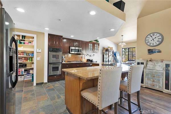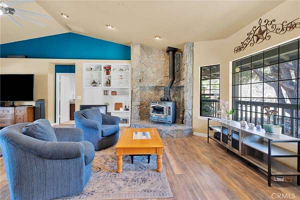 Close to ski slopes! Wellness, peace, and tranquility found here. Highly upgraded custom built home in a serene and private location. ON PAVEMENT and ON NATURAL GAS with PRIVATE WATER WELL. Enjoy four seasons and all the scenery that goes with! This property affords modern conveniences, combined with peaceful rural living. This property is well designed from the inside out. Driveway is completely gravel surfaced, and is accessed by paved Green Road. Triple driveway access allows for plenty of parking when entertaining, and also for RVs, toys, etc. Oversized two car garage with a work room located inside garage. The home has two entries, both with generous decks and ready for good old fashioned front porch sitting to enjoy this picturesque setting. Flooring inside is upgraded to Lifetime vinyl in the main living area. Open floor plan design with the wrap-around porch, plenty of indirect natural light enters the home. Dual heating, dual cooling systems with upgrades. Central air, central heat, with new attic ducting, evaporative cooler and cross-breeze design. If you're new to the high desert, then you may not already know about the wonderful night time breezes, low humidity, and wonderful warm weather nights where you'll enjoy allowing the screens to bring in a fresh breath of clean air. Central has heat plus a large freestanding wood burning stove, centrally located in the home, with a blower. Combined with a very large ceiling fan, and the design of the floor plan, the current owner uses this as the primary heat source in the winter. A corner fireplace in the primary bedroom suite adds cozy ambiance on winter nights. Split floor plan with very large primary suite with private deck access. En suite includes separate water closet, shower, soaking tub, and seated vanity. Plenty of built-ins, niches, and storage cabinets throughout the home so everything has its place Upgraded hall bathroom with wainscoting and upscale fixtures. Kitchen is dual tone custom cabinetry, granite sink, RO drinking water, instant hot water, and don't forget that the house water is from a healthy well, and filtered through a Rainsoft water softener system. Upgraded appliances and fixtures. Walk-in pantry. Natural edge granite counters. Bedroom closets have custom built-ins. All bedrooms are quite large. Many other custom features which can be experienced with a private showing. Plan to spend a good while here when viewing as there is so much detail to learn about and appreciate.