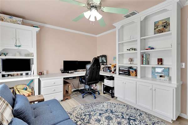 - Built-In Features, Ceiling Fan(s), Crown Molding, Custom Covering Window Features, Granite Counters, High Ceilings, Home Automation System, Living Room Deck Attached, Open Floorplan, Pantry, Plantation Shutters, Screens, Wainscoting