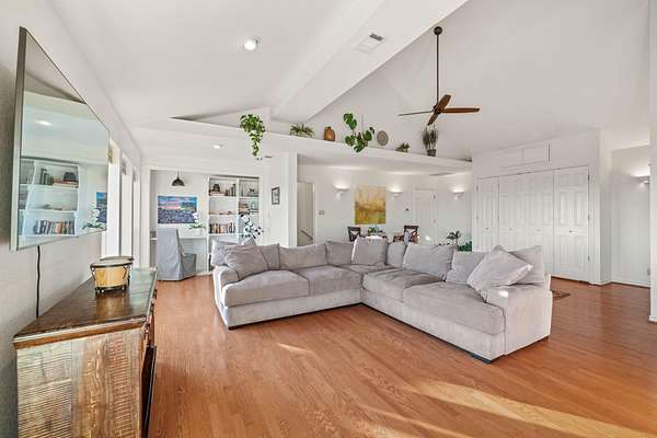 - Breakfast Bar, Ceiling-High, Ceiling-Vaulted, Crown Molding, Granite Counters, High Speed Internet, Interior Steps, Multiple Living Areas, Murphy Bed, Natural Woodwork, Open Floorplan, Pantry, Primary Bedroom On Main, Recessed Lighting, Stone Counters, Track Lighting