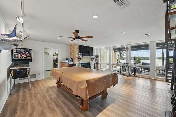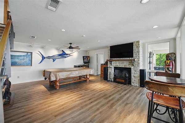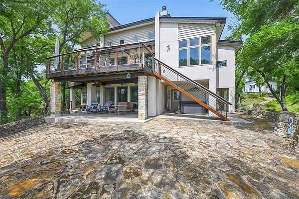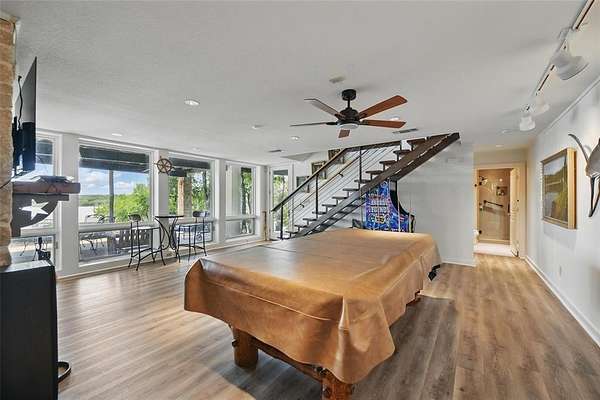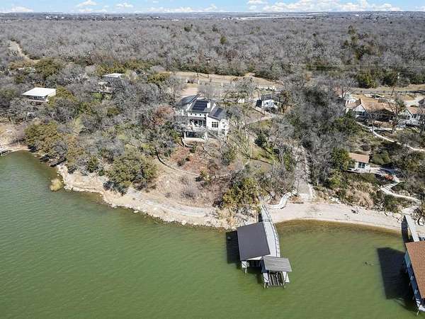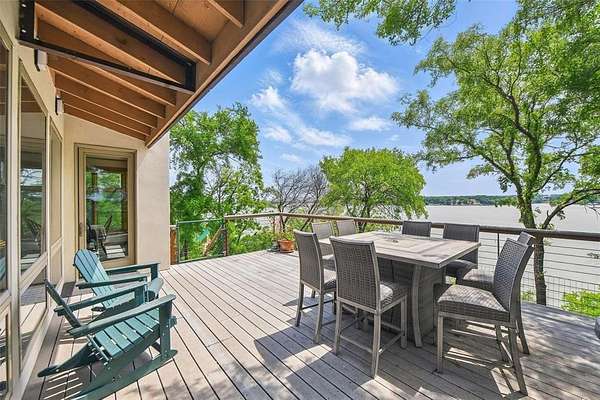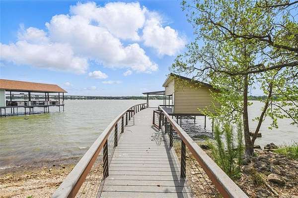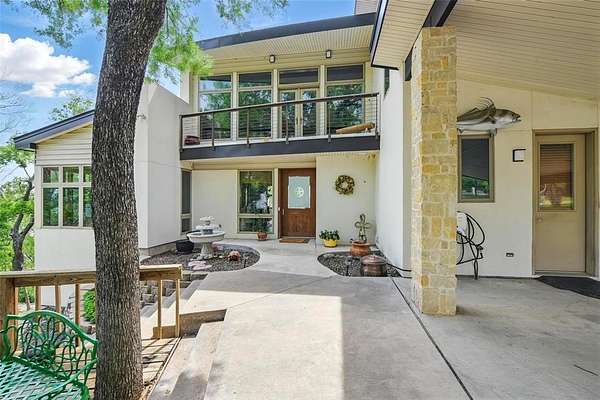 Luxury Lakefront Living Experience the perfect blend of modern architecture, serene lake life, & refined comfort in this one-of-a-kind Lake Worth contemporary, designed by Ames Fender. Set on over 1.5 private acres with 313 feet of waterfront, this extraordinary property is ideal as a full-time residence or a luxurious weekend retreat--just 15 minutes from downtown Fort Worth. Tucked behind a gated iron & rock fence, the home welcomes you with thoughtful design & high-end finishes throughout. The three-level layout offers both flexibility & privacy, beginning with a lower level that features a bedroom, full bath, game room, & second utility room--all opening to a covered stone patio overlooking the water. On the main level, you'll find the spacious living area with a fireplace, a chef's kitchen outfitted with a new Sub-Zero refrigerator, two dining areas, & the primary suite. The primary retreat includes a generously sized en-suite bath with a walk-in tub & a separate shower featuring three shower heads. A second utility room & a half bath complete this level. Upstairs, a loft area, two additional bedrooms, & a full bath offer perfect accommodations for family or guests. Every detail of this home has been carefully upgraded for both style and performance, including a new metal roof and an owned solar system with a backup generator. Additional luxuries include surround sound throughout the home, two utility rooms for added convenience, & a standalone garage offering extra storage or workspace. Outdoors, enjoy an enhanced covered boat dock with lift, a rare sandy beach area, & a gravel road leading directly to the water for easy boating access. Whether you're entertaining on the expansive main-level deck or relaxing by the shoreline, every inch of this property invites you to unwind and embrace the lakefront lifestyle. This is a rare opportunity to own a signature property on Lake Worth--where architectural sophistication meets the peaceful charm of lakeside living.