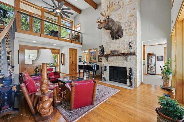 - Built-In Features, Cable TV Available, Cathedral Ceiling(s), Decorative Lighting, Double Vanity, Eat-In Kitchen, Flat Screen Wiring, Granite Counters, High Speed Internet Available, Loft, Multiple Staircases, Open Floorplan, Pantry, Sound System Wiring, Vaulted Ceiling(s), Walk-In Closet(s)
