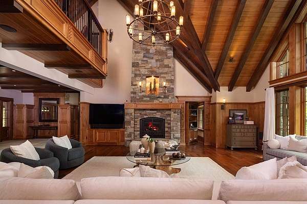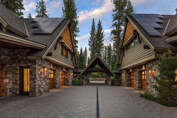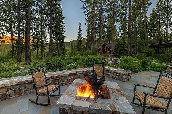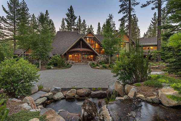 Set on nearly four acres in the heart of Martis Camp, 8133 Valhalla Drive is more than just a home, it is one of Tahoe's most iconic legacy estates, an uncompromising expression of mountain architecture, family connection, and timeless design. With 9,783 square feet of living space, this extraordinary residence was designed as a sanctuary for generations, where every corner reflects intention, warmth, and the serenity of the High Sierra. From the moment you arrive via the private circular drive, past cascading waterfalls and into a grand courtyard flanked by dual garages, you feel the estate's singular presence. The main home unfolds across expansive indoor-outdoor spaces, where the sunlit great room, towering beamed ceiling, and walls of glass reveal breathtaking views of forest, fairway, and the ridgelines of Northstar California's Lookout Mountain. Fronting the practice field and backing to the 17th green of the Tom Fazio masterpiece, with the Camp Lodge a short walk away, the home offers a front-row seat to the very best of Martis Camp. The crescent-shaped back patio, with its water feature, stone pathways, and vibrant landscape, frames every gathering in natural beauty. Anchoring the patio are a large hot tub, circular firepit, and a trail leading to a private guest house complete with its own living room, kitchen, fireplace, and bedroom suite. Inside, the kitchen is thoughtfully appointed with Wolf, Sub-Zero, and Miele appliances, and is complemented by a full-service pantry with wine fridge, secondary dishwasher, warming drawers, and additional cold storage. Multiple dining spaces, both formal and informal, capture the home's ideal south-facing orientation, delivering golden light throughout the seasons. Each of the bedrooms is a retreat, but the primary suite elevates owner living to new heights with its own library, office, fireplace, steam shower, and private patio with hot tub access. Other highlights include a bunk room, a whimsical children's playroom hidden behind a storybook-sized tree trunk door, and an entertainment wing with billiards room, home theater, and a deck perched above the 17th green. Additional features include a five-car garage and a carriage house with flex space, gym, sauna, and full bath. As Forbes once said, "Martis Camp may be the best four-season private community in the U.S." -- and there is no home that captures its spirit quite like this one. This is not just a home. It's a once-in-a-lifetime opportunity to own the crown jewel of Martis Camp--a place built for generational memories.