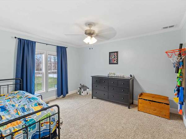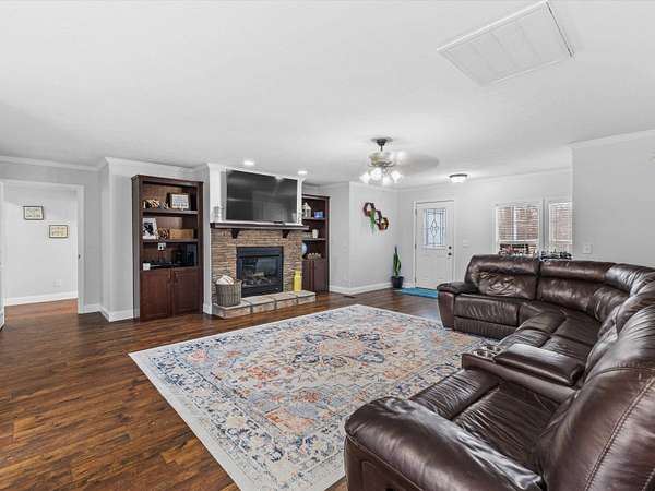 New year, new home and this one is a showstopper! Gorgeous 3.91-acre property offering over 2,000 sq ft of living space, 3 bedrooms, 2 bathrooms, a 30'x36' pole barn and a 30'x30' barn. Every inch of this property has been immaculately kept and thoughtfully upgraded. Step inside from the covered front porch to find an open concept living and dining with gas fireplace and glass doors leading to the rear deck; spacious kitchen with island, breakfast bar, ample cabinet space and all new LG appliances; a fabulous primary suite with tray ceilings, dual sinks and extra vanity space; off the kitchen is an office area and a mud room. Upgrades include new roof in 2021 with 50yr dimensional shingles, new Bosch heating and air in 2023 with new return vents and trunk line, new LVP flooring in 2024 with lifetime warranty, all new top-of-the-line stainless steel LG appliances in 2025, beautiful new kitchen sink and faucet, and all new toilets, sinks and faucets in the bathrooms. If that is not enough then step outside. A 30'x36' pole barn with a 10' overhead door and 12'x36' attached carport and a 30'x30' barn currently set up for stalls and a chicken coop surrounded by a fenced pasture area with a pond. You'll find pear trees, apple trees, blackberries, strawberries and an adorable firepit area to kick back and relax. This one is move-in ready and truly a must see!