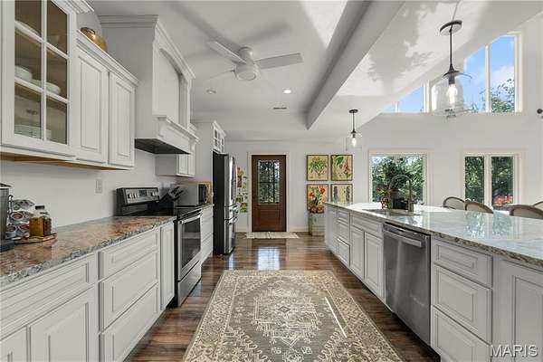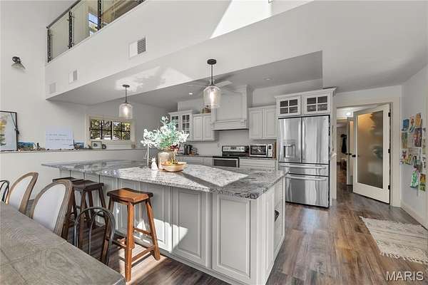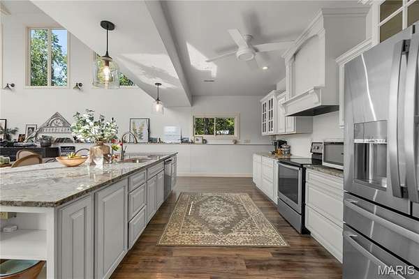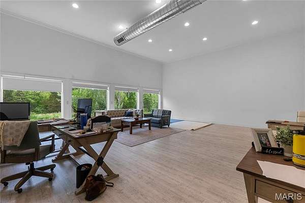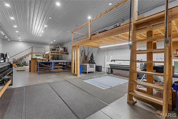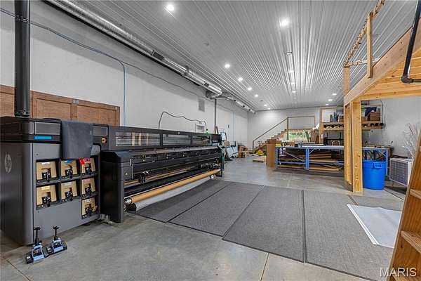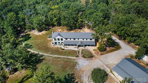 Modern Farmhouse on 30.5 Acres - This 3,800 +/- sq. ft. two-level home offers 3 bedrooms, 2.5 baths, and an open floor plan with living, dining, and kitchen areas filled with natural light. The spacious kitchen features a huge center island, granite countertops, and a walk-through pantry. Additional highlights include a loft office, separate family room, gas fireplace, main-level laundry, screened porch, and open patio. The detached 2-car garage provides RV storage plus a studio apartment for guests or income. Outdoors, enjoy a stocked pond, abundant wildlife, and trails across the property. An additional 6,000 +/- sq. ft. building offers endless potential for storage, business, or creative use. Conveniently located between Perryville and Fredericktown, this property is ideal for a private residence, Airbnb, or event venue with tons of possibilities.