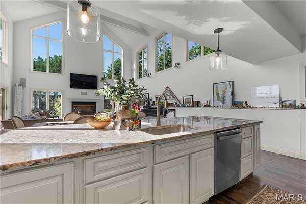 - Cathedral Ceiling(s), Custom Cabinetry, Dining/Living Room Combo, Granite Counters, Kitchen Island, Open Floorplan, Walk-In Pantry, Wired For Sound