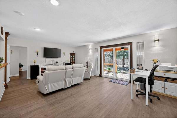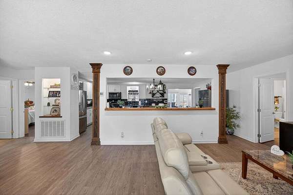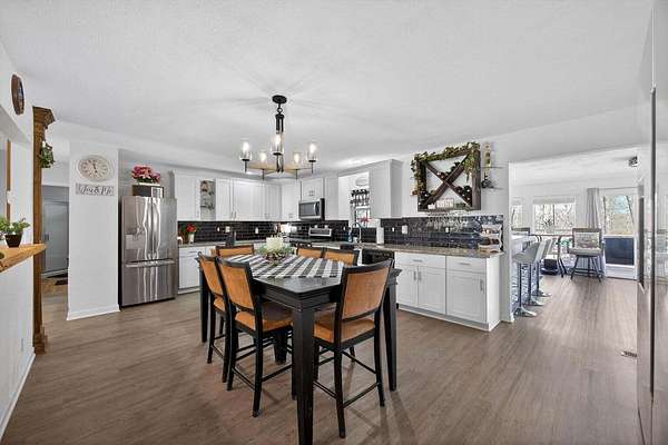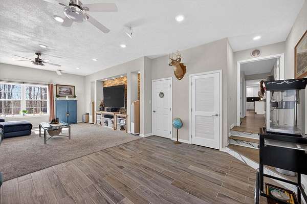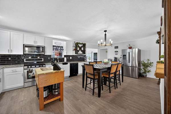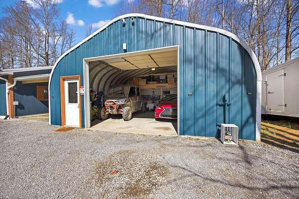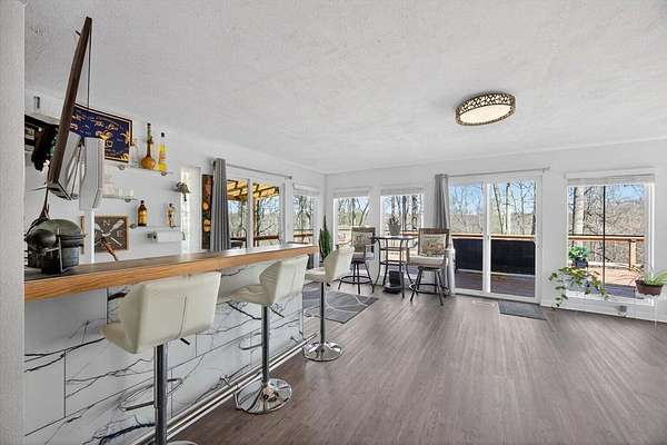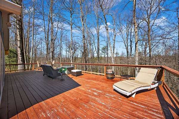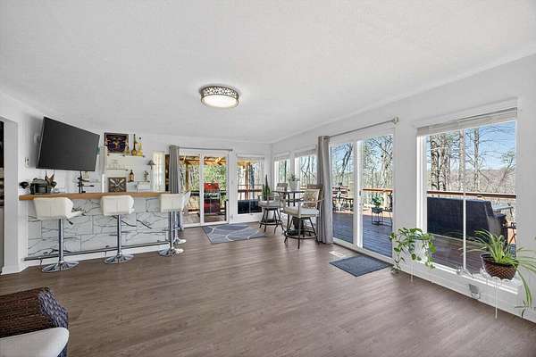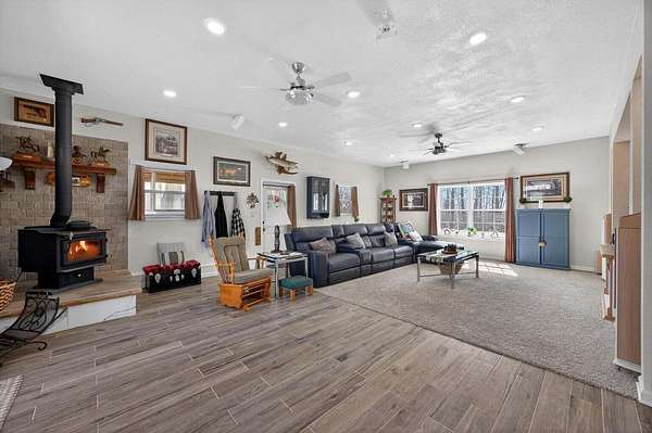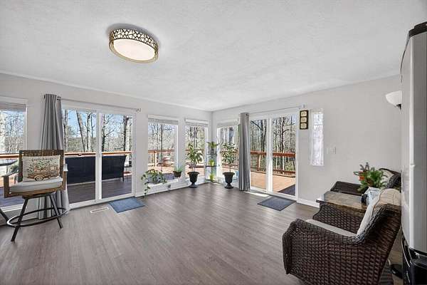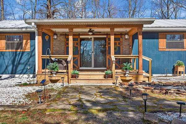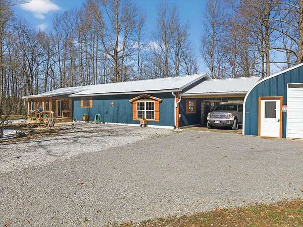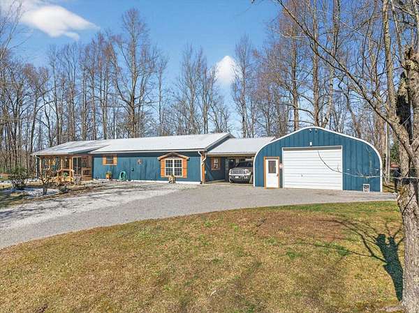 Situated on 13+ private acres with established trails, this property blends modern finishes with outdoor living. This home has split bedroom and open concept all on one level. Enjoy the spacious living area with built in entertainment center and 10ft ceilings. the home boasts luxury vinyl flooring throughout, granite countertops, and gas appliances. The sunroom features a built-in hideaway bed and wet bar for added flexibility. An expansive deck with covered grilling area overlooks the land. Also includes a large 2-car detached garage with 10 ft doors and an insulated outbuilding with power. This is the kind of property that gives you room to breathe, entertain and truly enjoy your land without sacrificing modern finishes and convenience.