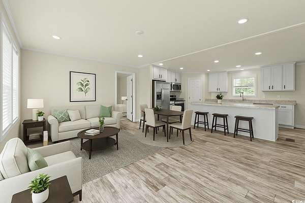 Welcome to your brand new, never-lived-in 3-bedroom, 2-bathroom home situated on a spacious 1.75-acre lot in the peaceful countryside of Johnsonville, SC -- with no HOA and endless possibilities. Whether you're looking for room to roam, space to grow, or simply a quiet retreat from the hustle and bustle, this property offers the perfect blend of modern living and rural charm. Step inside to an open-concept layout filled with natural light and beautiful flooring throughout the main living areas. The living room flows effortlessly into a bright, modern kitchen featuring stainless steel appliances, white shaker-style cabinetry, expansive countertops, and a large center island with a breakfast bar -- ideal for entertaining or preparing meals with ease. The primary suite is thoughtfully designed as a private sanctuary, complete with plush carpet, a spacious walk-in closet, and a luxurious en-suite bathroom boasting dual sink vanity, plenty of storage, and a gorgeous tiled walk-in shower with dual showerheads. Two additional bedrooms and a full guest bathroom offer flexibility for family, guests, or a home office. Outside, enjoy the freshly seeded yard as the 1.75-acre lot gives you the freedom to enjoy wide open space -- perfect for gardening, building a workshop, adding a pool, or simply relaxing under the Carolina sky. With no HOA, you can create your own vision without restrictions. There are 6 other vacant lots near by if you envision a larger homestead. Plat map is included in the photos, this is lot #4. Located just minutes from downtown Johnsonville and within easy reach of nearby Florence, this home combines peaceful country living with convenient access to shopping, dining, and schools. Whether you're starting fresh or settling down, this property is move-in ready and waiting for you to make it your own. Don't miss this rare opportunity to own a beautiful new home on a large private lot -- schedule your showing today!
