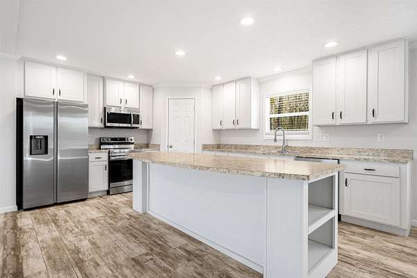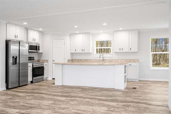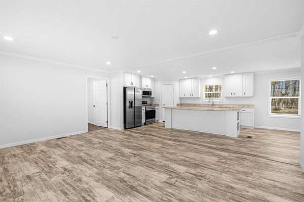 Est $1,226/mo2024 double wide mobile home with approximately 1.75 acres on the Midway Highway. Mobile home has never been lived in and has brick underpinning and comes with kitchen appliances. Town water and septic. Johnsonville Schools District Five.
