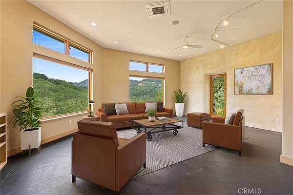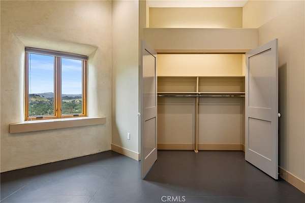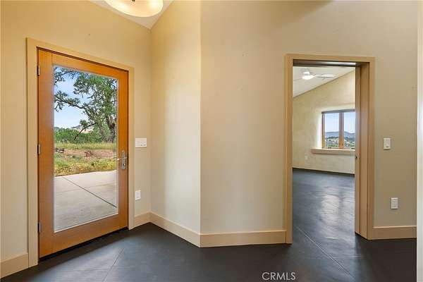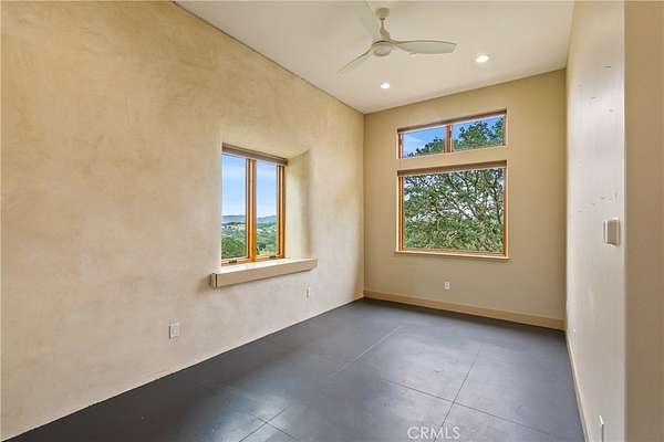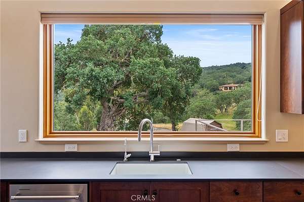 Discover the unique charm of 8140 Castenada Lane, a newly built, single-level home in Atascadero with straw-built walls on 2 sides for energy efficiency and design. This 1977 sf, 2-bedroom, 1.5-bathroom residence was thoughtfully designed to blend seamlessly with the picturesque ~4.19 acre landscape that surrounds it. Style greets you from every approach—whether you ascend the front steps or drive up to the back door. Completed in 2022, the home is equipped with a modern heat pump/split system and fire sprinklers, ensuring comfort and safety. Parking is available in the generous 1-car garage located beneath the main living area with additional parking available on the spacious grounds. Inside, the home boasts high ceilings and concrete floors throughout reinforcing its one-of-a-kind status. Enter through the double glass doors into a large living room anchored by a Venetian plastered wall and illuminated by large windows with transoms. A unique feature is the cleverly hidden bookshelf that opens with a gentle push to reveal extra storage plus a built-in entertainment console. The modern kitchen features all-electric appliances, lovely wooden cabinetry with custom pull out shelves, and paper stone countertops complemented by a butcher block breakfast bar. The sleeping quarters include a large primary bedroom with sweeping window views and a private half bath. The second bedroom offers a clever peek-a-boo insert showcasing the home's partial straw-built construction. Separating the bedrooms is a roomy main bathroom with a double sink matching the kitchen's elevated paper stone counters and wood cabinetry. Outdoors, the property offers significant potential with two separate barns. The larger barn is ~674 SF, and the second is ~480 SF. These structures are yearning to be finished into additional living space easily satisfying a desire for generational living or potential income generation (contact the City of Atascadero for full permitting details). With the placement away from the main home, it ensures everyone enjoys needed privacy. This unique property offers a secluded retreat, sweeping views, yet it is only minutes away from the shopping, dining and entertainment you desire. Call today to schedule a viewing. Please view the Virtual Tour for additional information.