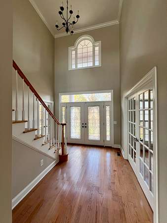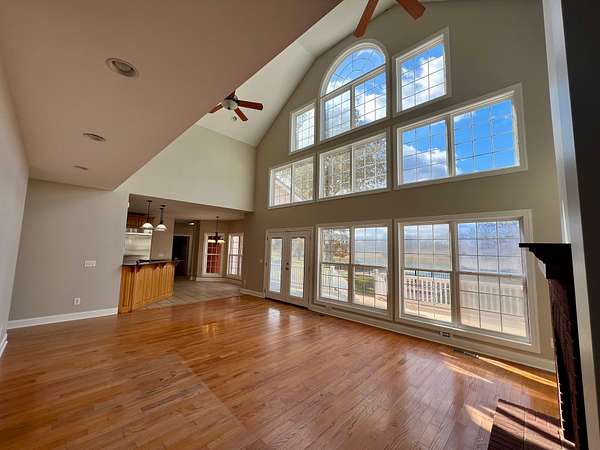 Inside are approximately 3,673+- sq ft of living space with 4 bedrooms and 4 baths (2 full, 2 half). The main-level master suite includes a fireplace, soaking tub, shower, double vanity, and two walk-in closets. The kitchen is laid out for real use--commercial 6-burner range, commercial refrigerator, double ovens, and a casual breakfast area--plus a pocket door to the formal dining room when you need it. The kitchen opens to a large living room with floor-to-ceiling windows looking over the pasture and pool, tall ceilings, and a gas fireplace. An office and a convenient half bath sit just off the living area.