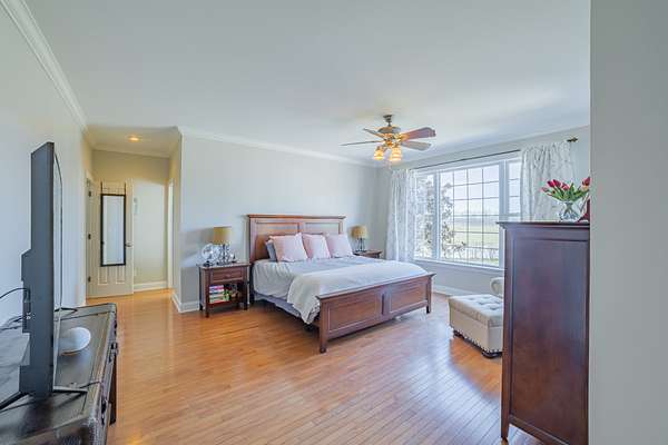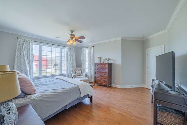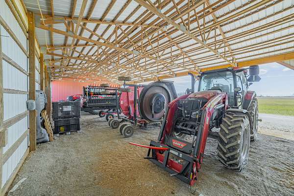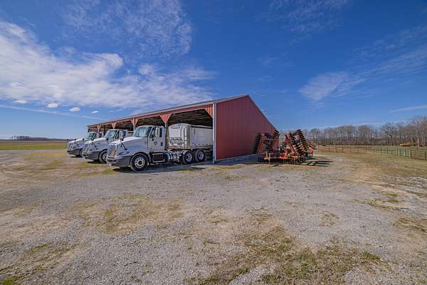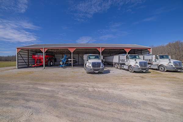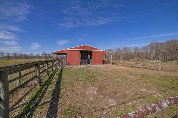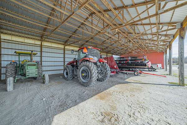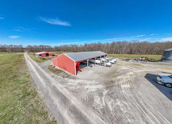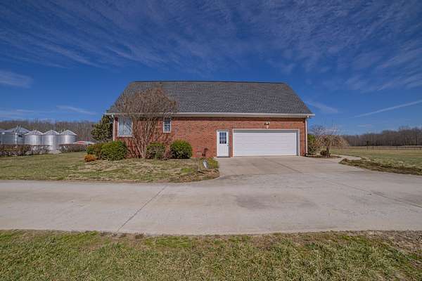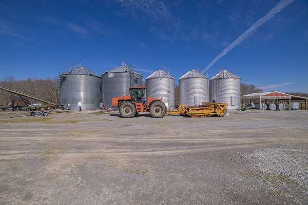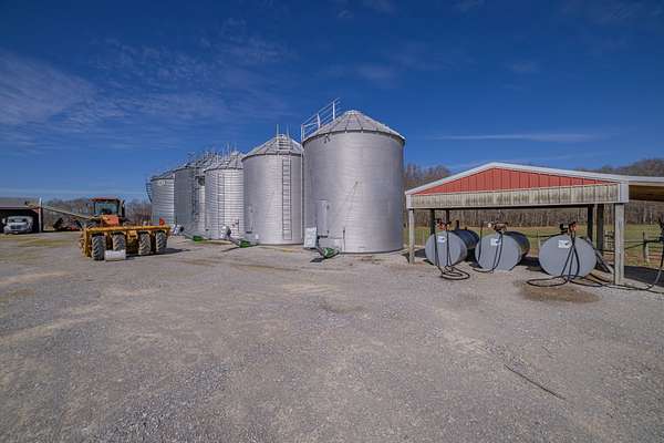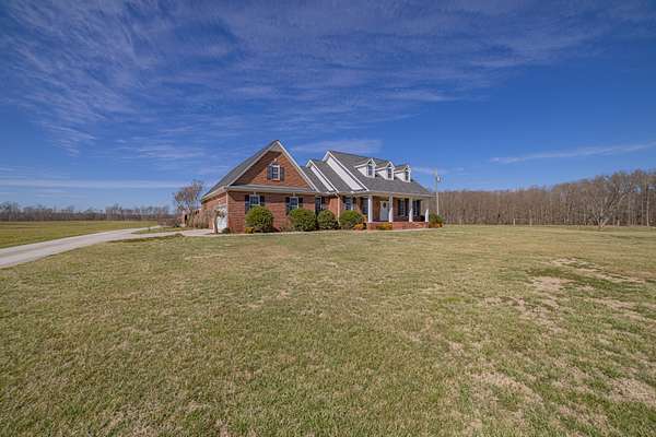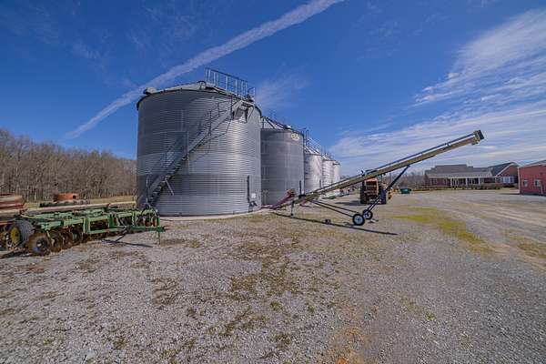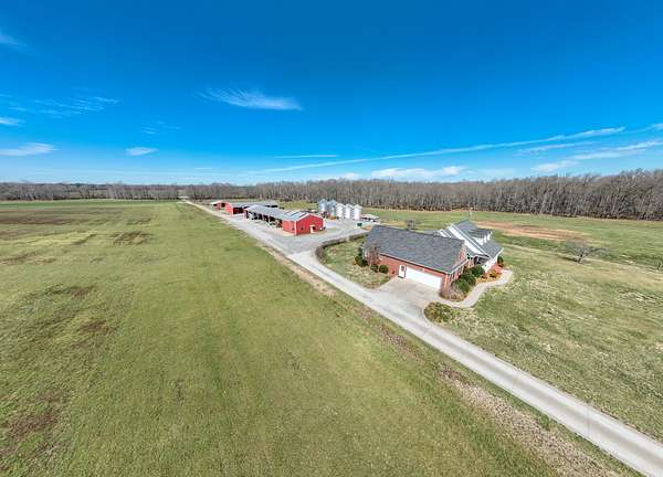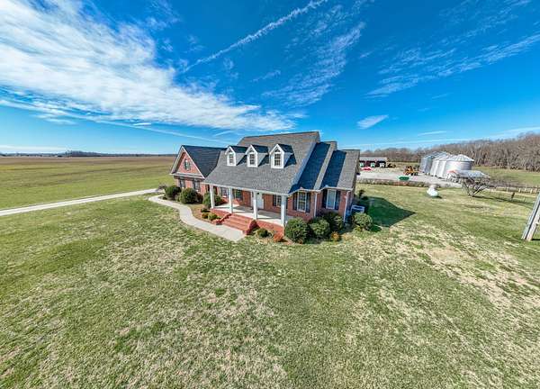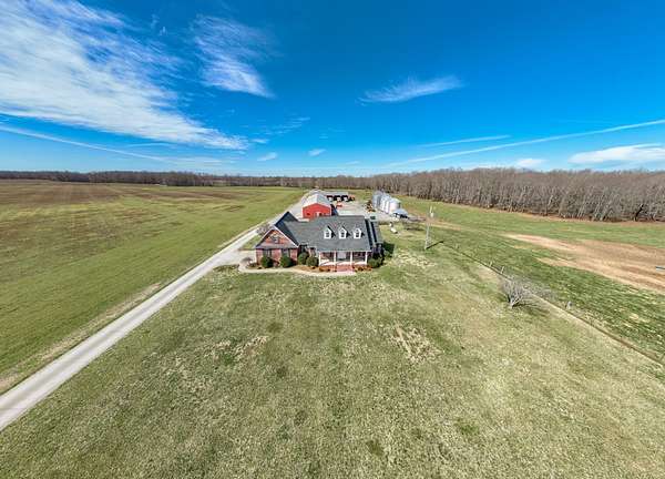 A rare opportunity to purchase a beautiful home located on 595+/- acres in one tract. This beautiful, well-maintained all brick home features 2.5 baths and 4 zoned bedrooms (primary bedroom bath features huge bath w/ double vanity, separate shower, jacuzzi tub & huge walk-in closet), hardwood throughout, tile in wet areas, 9 ft ceilings, crown molding; living room features built-ins & gas log fireplace; eat-in kitchen w/ granite countertop, breakfast bar and stainless steel appliances; separate dining room; laundry room w/ sink & workspace; 2 car attached garage, rocking chair front porch, covered back porch and big patio. The farm features implement sheds with office and workshop, livestock barn, 2 - 7500 bushel grain bins, 3 - 4000 bushel grain bins, 3 - 1000 gal fuel tanks, fenced & cross-fenced, and 3 wells with plenty of water. Nice wet weather creek stretches across the entire farm. Attached info includes survey, professional measurements and soil report.