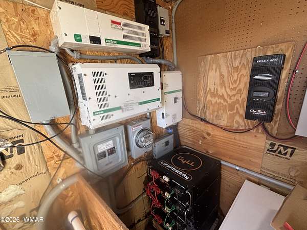 This 40 acre parcel includes 2 different livable homes that are set up to comfortably live off the grid. The solar system was recently upgraded with additional lithium batteries to store the power produced by the solar panels. A large generator is also set up for additional power. The main house is 960 sq ft with 2 bedrooms and 2 bathrooms. There is a second manufactured home with 385 sq ft that has one bedroom, bathroom and kitchen. New Anderson windows were installed in the main house that helps the house stay warm in the winter and cool in the summer. There is a mini split as well as a woodstove to keep the house warm. The property has 3 different sheds that protect tools and also the well pump and solar system. Approx 1 acre of the property was designed for a large garden.