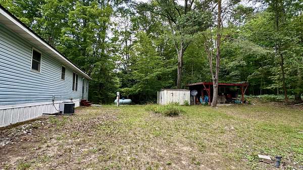 Here is a great opportunity to own 15 picturesque acres with the Middle Branch Pere Marquette creek gracefully winding across the property from corner to corner. The 3 bedroom, 2-bath 1987 manufactured home sits surrounded by young hardwoods and towering pines that are remnants of a former Christmas tree farm. Wild blackberries, strawberries and chokecherry trees attract an abundance of wildlife. The land also features a shallow marshy area that is reminiscent of a marl-bottom brook trout pond - ideal for future restoration or a tranquil water feature. Additional highlights include a retractable awning over the deck, a root cellar, two detached one-stalled garages with cement floors and remote door openers and a shed. Whether looking to hunt, homestead or relax in a serene setting, this one offered endless possibilities. Call today to set up your private showing
