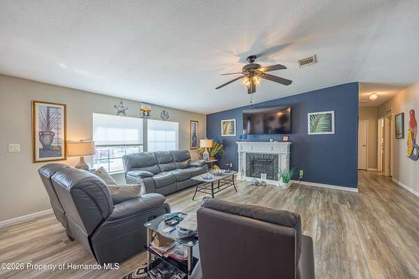 Enjoy unparalleled comfort and security in this pristine, [2002 ] manufactured home located in the desirable [Brookridge]. Boasting [nearly 1900] sq. ft. of living space, this home offers an open-concept design with high-end finishes throughout. The chef-inspired kitchen features stainless steel appliances, marvel countertops, and a large island perfect for entertaining. Retreat to the spacious primary suite and a spa-inspired bath featuring a double vanity and walk-in closet and shower. Highlights:Newer manufactured home on your own lot. No lot fees. Structure: Spacious 3BR/2BA, [Year] built, energy-efficient with]. Upgrades: [2 years new Vinyl plank flooring throughout, attached 2-car garage, 3 year new roof,2 year new HVAC, 4 year new marble ktichen counter tops, 5 year old Spa, and carport is 4 years old Live your best life in this move-in-ready, secure, and well maintained home. Schedule your private tour today--this gem won't last long!