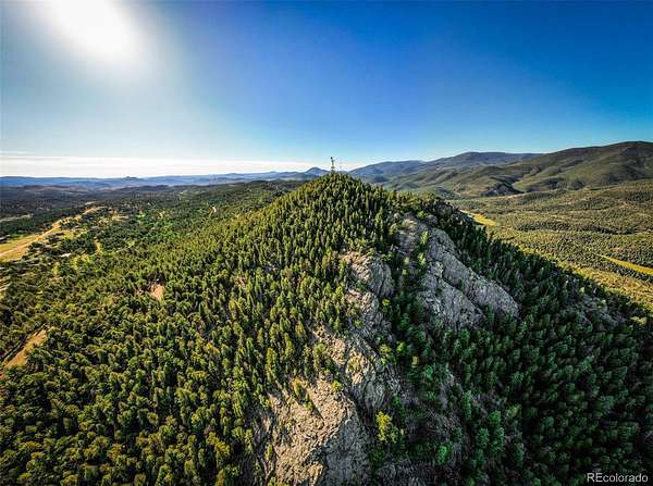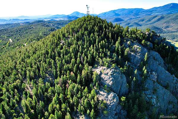 You can own the top or your own mountain, the west half of Mount Bailey at elev 9089 ft. The US Geologic Survey Monument from 1944 is at the top on your own property. This is a rare opportunity for you to buy. East half of Mount Bailey is Weakland-Fawks Park. That park has a hiking trail to the top of the east half. This property is not in Burland HOA but you may, if desired, join as a friend to Burland without voting rights. More info on Burland HOA: burlandhomeowners.org Driveway for this property is built with a level building site one-third up the mountain. Trees at that site are cleared for a wide-angle view to the north to see Lone Rock, Lions Head and Rosalie Peak (13,575 ft). Views to the west include Mount Logan (12,870 ft) & Crooked Top Mountain. The home you build may have views, from upper floors, to the west towards snow capped mountains up the Platte Canyon toward Kenosha Pass. Driveway continues past this 1st building site several hundred feet farther up the mountain with a second possible building site. Old deer trails continue up to top with 270 degree views to the east, south and west. Views are incredible but be aware of cliffs and wildlife on the mountain. While the property narrows up top, it widens on the south side of the mountain and continues down the slope while looking at Pike National Forest across the valley. Septic is installed for a 3 bedroom home. Well has not been drilled and will be household use only. Electric and natural gas are available at the street. Access gate is locked - agent needed to access property.