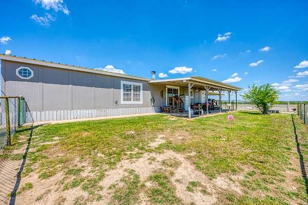 Located just 5 minutes outside of Florence, and within easy reach of Liberty Hill (30 minutes) and Georgetown (25 minutes), this well-maintained property offers the perfect blend of peaceful country living and convenience with access to city water. Situated on 5 acres, this property is ideal for livestock, hobbies, or anyone looking for space to spread out. The land is frequently visited by native wildlife including deer and turkey, adding to the quiet, rural charm. The 3-bedroom, 2-bath manufactured home offers 1,792 sq ft of comfortable living space and has been well cared for. The property is fully equipped for animals, featuring approximately 3.5 acres of 4x4 field fencing, a 10x10 turnout, and a 16x12 covered area for shade. Additional improvements include a 700 sq ft shop with an impressive 3,000 sq ft of lean-tos built around it-perfect for equipment storage, livestock shelter, or workspace. The front and backyard are fenced separately, making it ideal for pets. With a private septic system, multiple livestock structures, and room to grow, this property is a great opportunity for those seeking a functional and versatile rural setup just minutes from town.