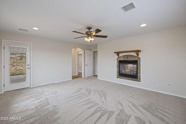 HUGE PRICE ADJUSTMENT! This well-built, ENERGY EFFICIENT custom home is now available at a newly REDUCED PRICE! This 3 bedroom, 2 bath residence was built on an insulated concrete slab and features a spacious split floorplan, with vaulted ceilings and a FIREPLACE connecting the great room to the primary suite. Enjoy tile flooring throughout the main areas, and NEW CARPET in the bedrooms. FRESH PAINT, throughout the interior adds a crisp, clean feel. Additional highlights include epoxy-coated floors in the 2- car garage, a low-maintenance yard with an extra-long covered patio to enjoy perfect VIEWS of the surrounding mountains. Don't miss this unique opportunity to own a hidden gem in a quiet and scenic location with breathtaking views.