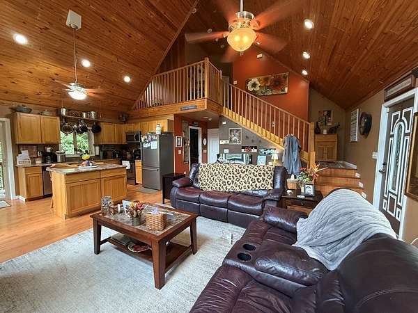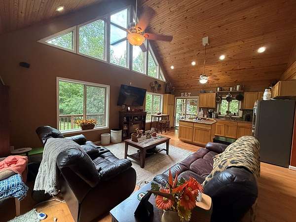 Escape to this stunning 4 bed 4 bath A-frame home that sits majestically on a hill, surrounded by nature's serenity. This property is perfect for those seeking unparalleled seclusion and tranquility flooded with natural light, providing breathtaking views of the surrounding landscape. The open concept layout is perfect for relaxation and entertainment. 2 car garage featuring ample parking and storage space for your vehicles and outdoor gear. Schedule a viewing! Don't miss this opportunity to own a unique piece of paradise!