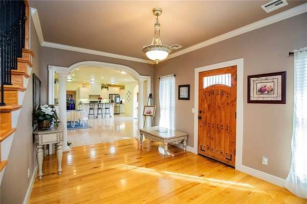Experience ultimate versatility in this expansive 5,518-square-foot estate, perfectly situated less than one mile from I-49 and under 15 minutes from the heart of Fayetteville. The thoughtfully designed split floor plan features a massive family kitchen that serves as the heart of the home, ideal for both daily living and large-scale entertaining. This home is set up perfectly for multi-family living arrangements with two primary suites, each boasting generous walk-in closets and private finishes. Also featuring two multi-car garages, both equipped with their own attached workshops for projects or extra storage. The upper level offers a spacious bonus family room along with two additional bedrooms, providing a perfect retreat for guests or children. With a total of seven bedrooms and six and one half bathrooms, there is no shortage of space in this grand residence. This home combines unmatched accessibility to city amenities with the privacy and scale of a true suburban sanctuary.