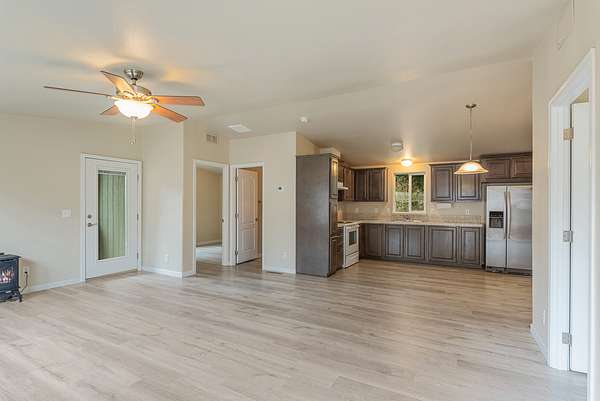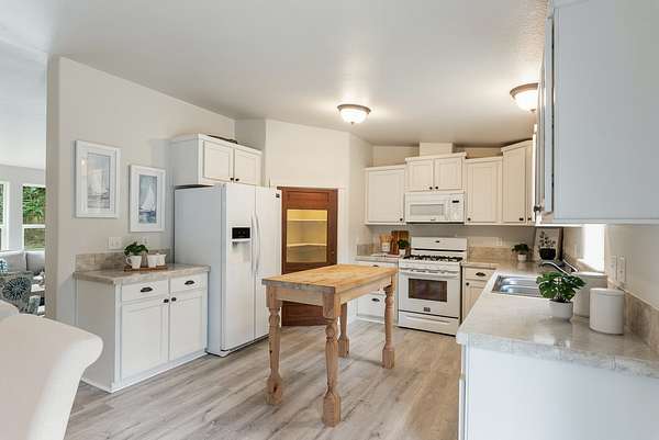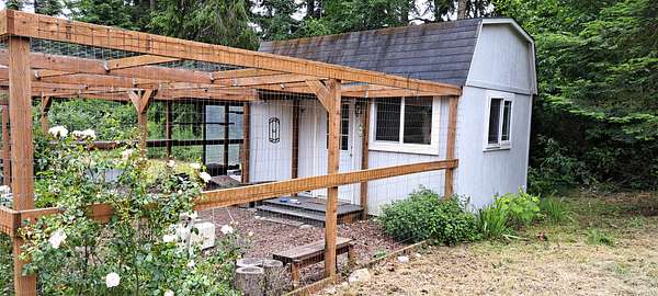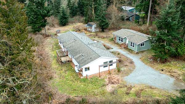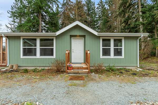 Charming home and DADU on 5 acres! Your own sanctuary! Peaceful 5 acre property at the end of paved road. Sun filled larger manufactured home & smaller DADU cottage next door-perfect for friend or multi-generational living. Main home has a large covered deck - potential greenhouse room. Other features: fenced organic garden w/raised beds + tool shed for your gardening needs; large garage w/room for shop + carport/RV parking: Small cabin w/secure enclosure for pets, or? Plenty of room for a mini farm and hobbies galore. Certified Wildlife Habitat. HOD include water. Shared 4 BDR septic. Special financing available. Contact me for more details on this unique property and financing options.
