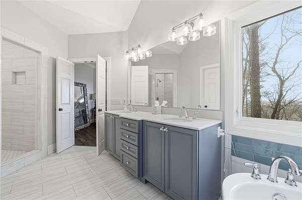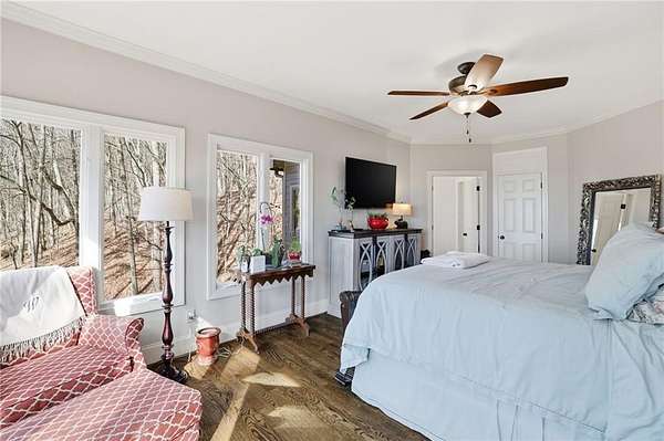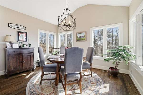 Nothing compares to coming home to this. Tucked on a beautifully wooded 1.97-acre lot just minutes from the Big Canoe main gate, this fully remodeled retreat offers the rare combination of convenience, space, and effortless mountain living. Step inside and look up - a dramatic two-story wall of windows fills the great room with natural light, while a custom carved fireplace anchors the space and invites slow mornings and cozy evenings alike. The flow is open yet warm, perfect for gathering after a day on the trails or the golf course. Seasonal views enhance the natural setting. The kitchen has been thoughtfully renovated with new cabinetry, quartz countertops, updated appliances, and hardwood flooring that now extends throughout the main living areas, creating a seamless, elevated feel. The primary suite lives comfortably on the main level and feels like a true escape. The spa-inspired bath transformation includes a freestanding soaking tub, beautifully tiled shower with bench, new vanity, and refined finishes that make every day feel indulgent. Upstairs and downstairs, guests have room to spread out. With over 5800 square feet of finished space, including a large finished terrace level, this home offers flexibility for additional bedrooms, hobbies, office space, or multigenerational stays - all while maintaining easy main-level living for owners. Multiple decks and covered outdoor areas overlook the wooded setting, offering peaceful spaces for morning coffee or evening wine. Fully updated, move-in ready, and located near the gate for quick in-and-out convenience - the mountain home weekend buyers wait for - and full-time owners dream about. A mandatory $5,000 capital contribution fee paid by the purchaser to the Big Canoe Property Owners' Association will be due at closing. Pursuant to Article II, Section 1, Paragraph bb of the Class "A" Covenants for the Big Canoe community, all property transfers are subject to the Big Canoe developer's right of first refusal.