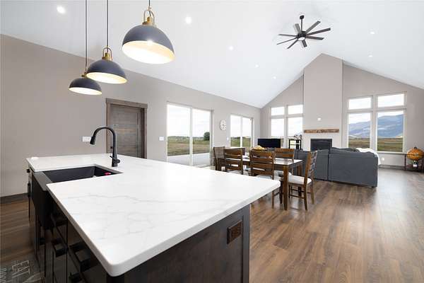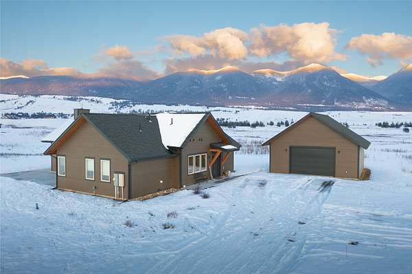 Enjoy massive mountain views while watching the elk from your living room or kitchen in this custom built, three bed, two bath home on almost 9 acres. Large windows & oversized glass sliding doors lead you to the wrap-around patio to enjoy the sunsets. The kitchen has quartz countertops, knotty alder cabinets stained in a beautiful whisky finish, a gas range, and a large island for all your cooking/baking needs. Escape to the master suite with oversized sliders to lay in bed and take in the views. Or soak in the tub in the en suite bathroom. The spare bedrooms are spacious with good-sized closets, and each offers mountain views. The oversized spare bath has double sinks, quartz countertops, and plenty of storage. The well lit laundry room has a sink, knotty alder cabinets for storage, and an in-cabinet hamper. The oversized 17'x30' garage has 9'7" sidewalls for your toys. Buyers and their agents are obligated to conduct due diligence and verify to their satisfaction the information contained herein regarding this property. This information is provided by outside sources and deemed reliable but not guaranteed.