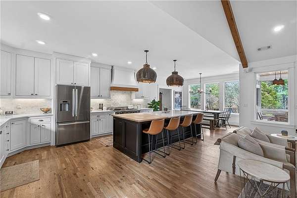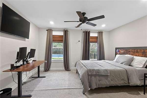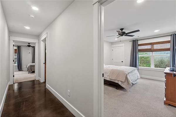 SPACE AND LOCATION!! This stunning 3,600 sq ft home is just minutes from Downtown Bentonville and the new OZ Bike Lift, offering the perfect balance of privacy and convenience. Featuring 5 bedrooms and 4 bathrooms, the home showcases European-inspired accents, rich hardwood floors, and a cozy wood-burning fireplace. The chef’s kitchen features a large island, abundant workspace, and a wine room that stores up to 144 bottles - perfect for entertaining. Two spacious living areas, upstairs and downstairs, provide flexibility for relaxing or hosting guests, along with a dedicated study ideal for working from home. The primary suite offers two separate closets and generous space to unwind. Step outside to your private backyard retreat with a pool and screened-in porch. Complete with a 3-car garage and timeless design, this home offers luxury living close to Bentonville’s trails, dining, and entertainment.