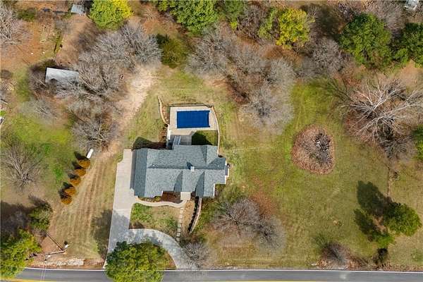 From I-49 / US-71 in Bentonville, take Exit 93 for AR-72 / Central Ave and head toward Walton Blvd / US-71B going north toward Bella Vista. Continue on Walton Blvd and turn right onto W. McNelly Rd (Peach Orchard Rd). Follow McNelly for several miles, then turn left onto Spanker Rd. Shortly after, turn right onto Spanker Ridge Dr and continue up the hill. 8151 Spanker Ridge Dr will be on the left side of the road.