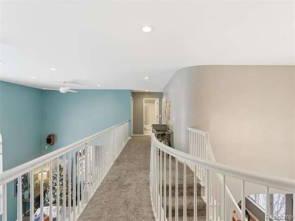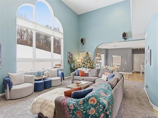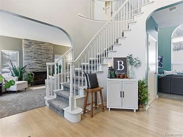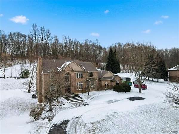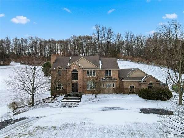 Sought-after Sashabaw Creek Meadows colonial featuring 4 bedrooms and 2.5 bathrooms and offering over 2,800 square feet of living space, nestled on a park-like 2-acre setting. A circular drive leads to a 3-car side-entry garage with epoxy floors and built-in cabinetry. The dramatic main entrance showcases a curved staircase and bridge overlooking the great room, highlighted by enormous picture windows that frame the meticulously maintained backyard and a cozy gas fireplace, perfect for snowy Michigan days. The bridge separates the second-floor primary suite with en-suite bathroom from three additional bedrooms and a full bathroom, offering privacy and functionality. This custom floor plan features curved walls and arched doorways throughout. The large eat-in kitchen includes an island and breakfast nook and opens to a brick paver patio through double French doors. Additional highlights include a study with glass double French doors, a full unfinished basement with two large egress windows, mature trees, rock walls, and brick paver patios and walkways. The property backs up to 10 acres of wooded land, providing serene views. Incredible location for I-75 commuters, Pine Knob Music and Ski Resort, Independence Oaks County Park, and nearby shopping and restaurants. Paved sidewalks located just outside the neighborhood allow for safe walking, biking, and running throughout the surrounding area. Be sure to check out the extensive list of updates! You'll want to make this beautiful home yours today! Call for a private showing! Please note: There are dogs in the home. Homeowners require sufficient notice to allow time to have the dogs removed from the house and/or secured in their kennels prior to any walk-through or showing.