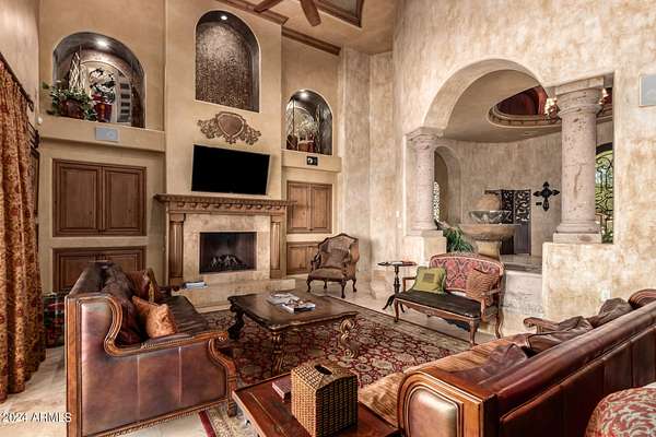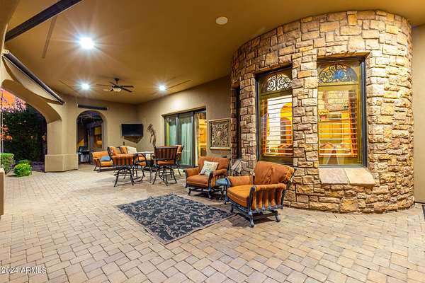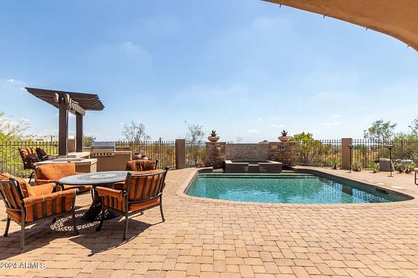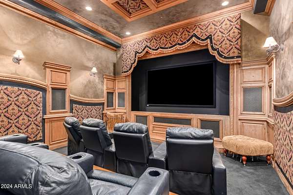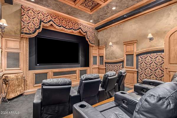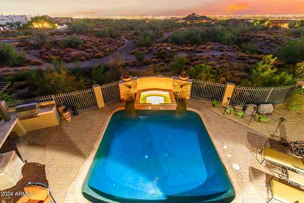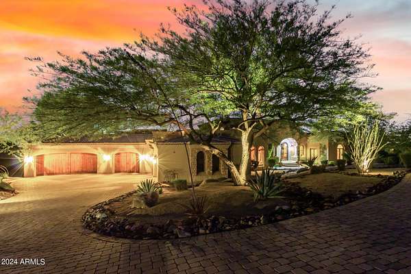 This 2 ACRE Estate Home is a rare find in beautiful Las Sendas. This stunning property offers the most incredible unobstructed south facing views of the surrounding mountains & city lights. Discover the luxury living at its finest with this captivating residence that boasts a circular foyer with water feature, 20+ ft soaring ceilings & a sliding glass wall that blends the interior with the exterior. The professional Viking kitchen, theater room, home office & 2 well located powder rooms complete the interior. Embrace the pinnacle of luxury living with a spacious rooftop deck showcasing the panoramic views of the valley. The extra large 4 car garage will house your vehicles & all your toys. Located near loads of shopping, dining & freeway access.