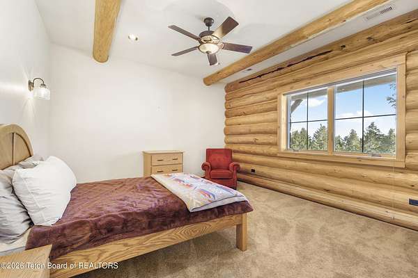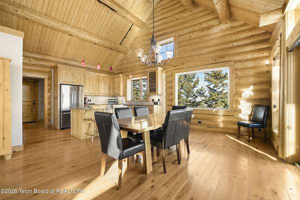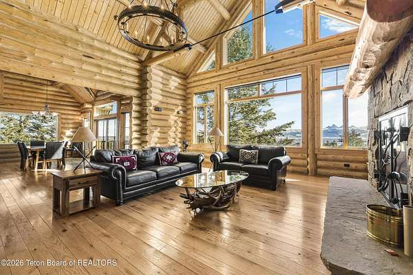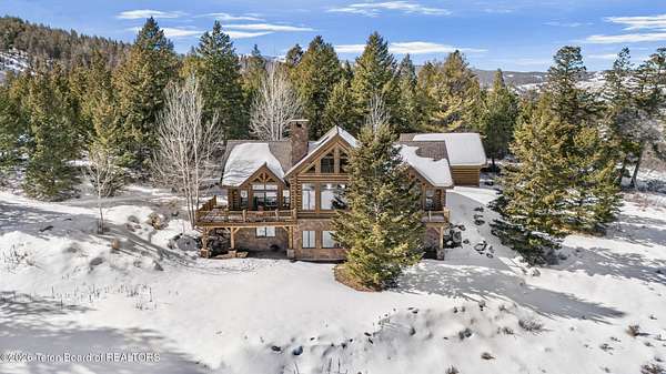 Est $19,195/moPerched on 40 elevated acres, this extraordinary log estate commands a rare, unobstructed four-peak panorama of the Grand Tetons -- a view that feels almost unreal. From the warmth of the great room, expansive windows frame snow-capped summits like living artwork. Bordered by 2,500+ acres of ranch land with direct National Forest access, privacy here is absolute. The 4,710 sq ft custom log home offers 3 bedrooms, 2.5 baths, a loft, flexible gathering spaces, and spacious decks and patio space. A detached two-car garage and handcrafted log gazebo complete this remarkable mountain retreat. Located 30 minutes from Grand Targhee Resort, this is mountain living at its finest.