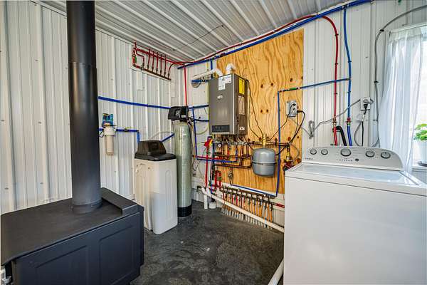 - Free-Standing Gas Range, Refrigerator, Stainless Steel Appliance(s), Tankless Water Heater, Washer/Dryer, Water Purifier