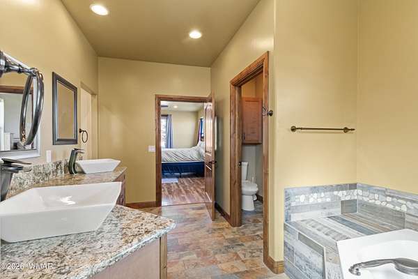 - Breakfast Bar, Double Vanity, Formal Dining Room, Full Bath, Master Downstairs, Pantry, Shower, Soaking Tub, Split Bedroom, Tub/Shower, Vaulted Ceiling(s)
