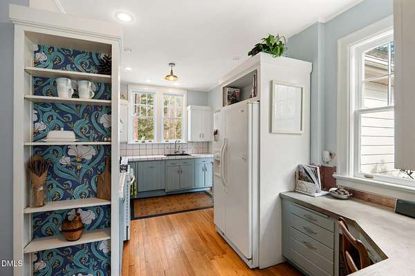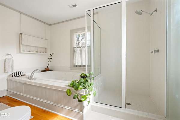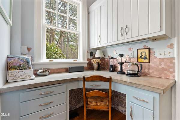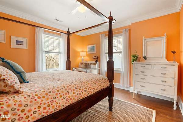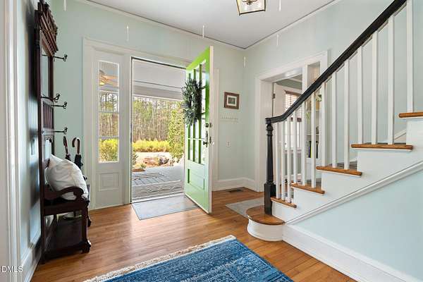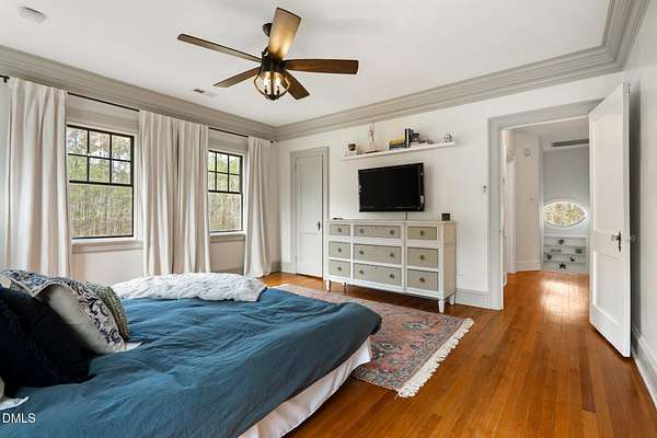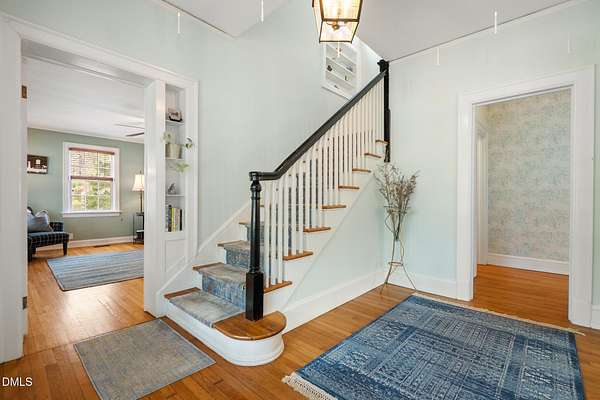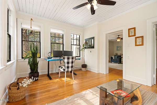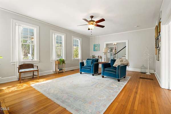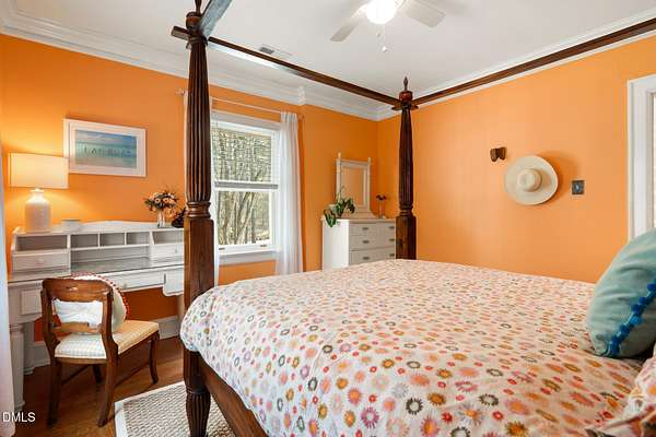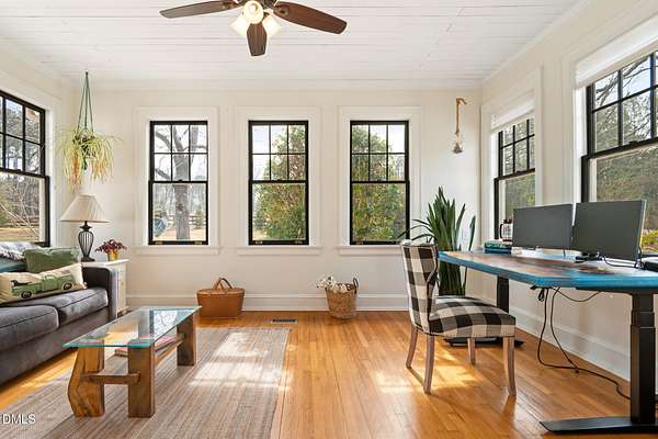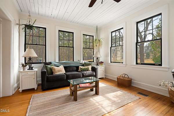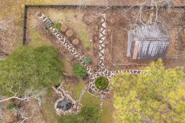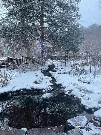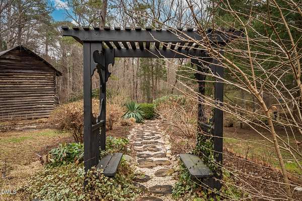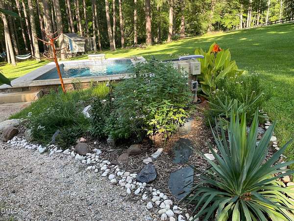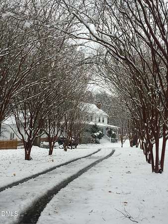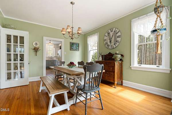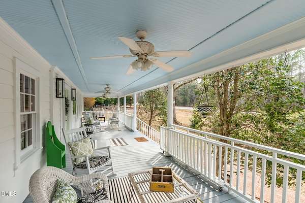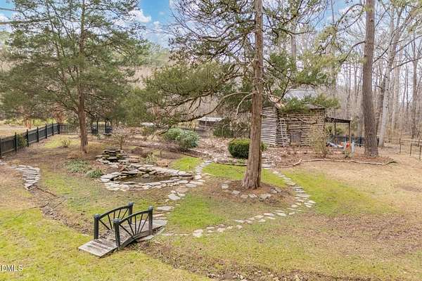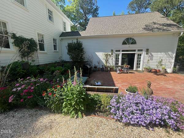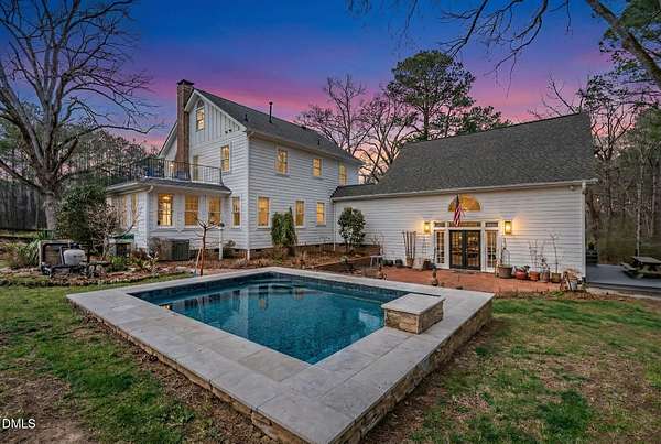 Extraordinary Southern Classic backs up to Jordan Lake's hundreds of preserved wooded acres; yet, just 20 minutes to RDU airport, 20 minutes to Pittsboro and 10 minutes to downtown Apex! Built in 1929, this picturesque farmhouse was saved from development and moved to its current location in 2000 with upgrades and additions at that time. It once served as both the home and office for one of Apex's first dentists! An extra deep front porch welcomes you into the inviting foyer. 3 bedrooms, 3 full baths, a third floor bonus room and beautiful light filled office area feature in the original structure. Many historic details: picture hanging rails, floors, doors, hardware, claw-foot tub - even a fold out ironing board! There's also a custom wood stove insert for cozy nights. Added in the back is a huge studio / gym / games room / shop - over 1,000 sq ft including a large balcony on 3 sides has so many possibilities! And it adjoins a large brick patio and a Trex topped deck. There's so much to enjoy outside! The home sits on just shy of 3 acres of beautifully landscaped grounds, featuring mature trees and perennial gardens as well as a historic tobacco barn. There's also a custom chicken coop, large plunge pool, koi pond with waterfall, fenced backyard for the dogs, garden space, blueberry, blackberry and fig bushes, bluetooth irrigation, and even an old corn crib. It has been certified as a bird friendly habitat by the New Hope Bird Alliance. There is walking access to White Oak Creek, a waterway that serves as a regular nesting site for bald eagles and connects to Jordan Lake, a great local spot for boating and hiking. In 2011, the home made local history again when it was featured in the independent film The Carrington Event as the home of the fictional Carrington family. It's also included in the Chatham County Historical Association's catalog of homes. Come see this one! Showings start March 11th.