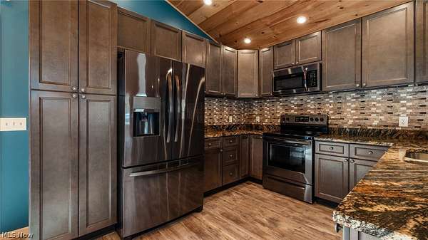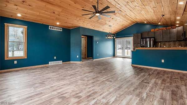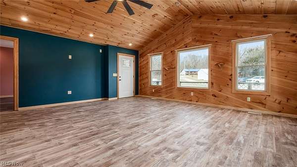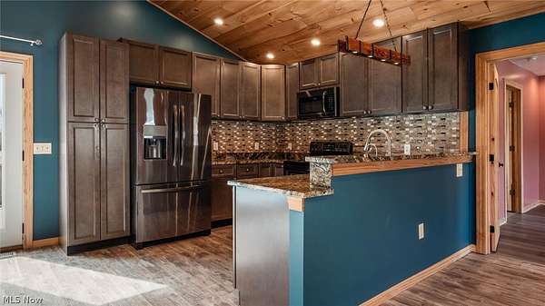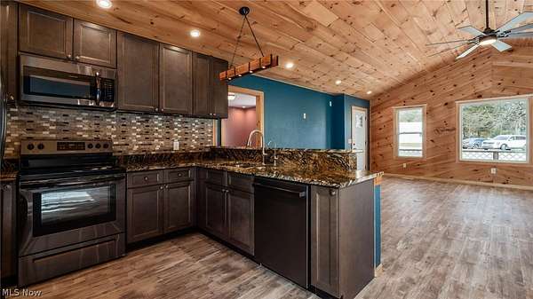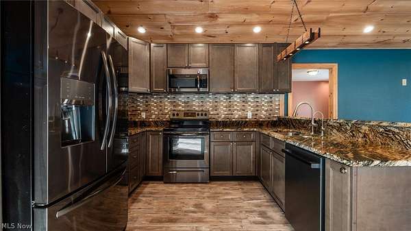 Welcome to your private retreat - a 2020-built home positioned on 28.96 acres of rolling, wooded beauty across two parcels. Whether you're an avid hunter, outdoor enthusiast, or simply craving space and serenity, this property delivers the lifestyle you've been looking for. There is a private pond located on the second parcel that enhances the land's appeal, perfect for fishing, wildlife watching, or simply enjoying peaceful views. Imagine mornings on the wrap-around deck with coffee in hand, overlooking your own peaceful acreage. Evenings are just as inviting on the expansive rear deck, ideal for gatherings, grilling, or quiet sunsets surrounded by nature. Inside, the open-concept floor plan creates effortless flow for everyday living and entertaining. The kitchen is both stylish and functional with granite countertops, stainless steel appliances, and ample space for hosting friends and family. First-floor laundry adds everyday convenience, while newer flooring, a reverse osmosis system, and water softener provide thoughtful upgrades throughout. For those who need space to work, store, or play, the outbuildings are exceptional. A 28x30 white pole barn and a 30x48 pole barn/garage with 14-foot ceilings offer endless possibilities - from equipment storage to hobby space or workshop. The RV pad with 50-amp electric service makes hosting guests or hitting the road effortless. This is more than a home - it's room to roam, room to breathe, and room to build the lifestyle you want.