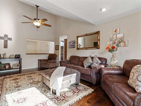 Enjoy a peaceful outdoor setting with fresh landscaping, mature oak trees, native rock formations, and a seasonal creek. A composite deck with wire railing is ideal for relaxing or entertaining. The home features Hardi-Plank siding and is fully gated and fenced with classic oil pipe.